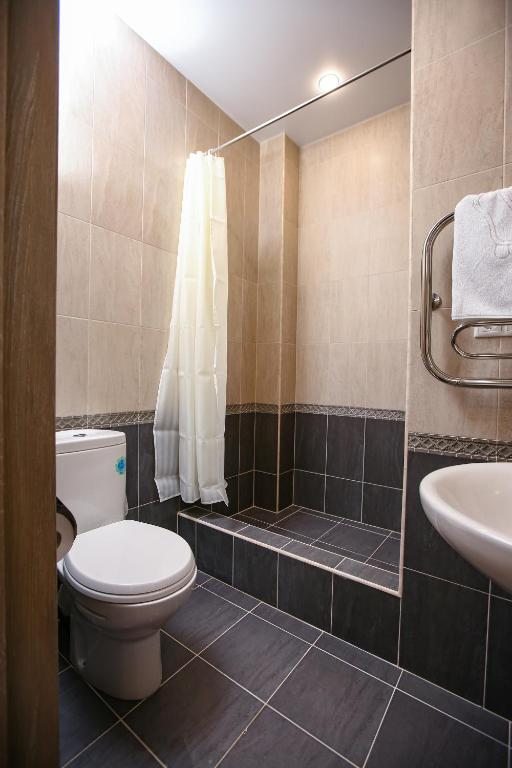 Санузел: с душем, туалетные принадлежности, фен, халат
