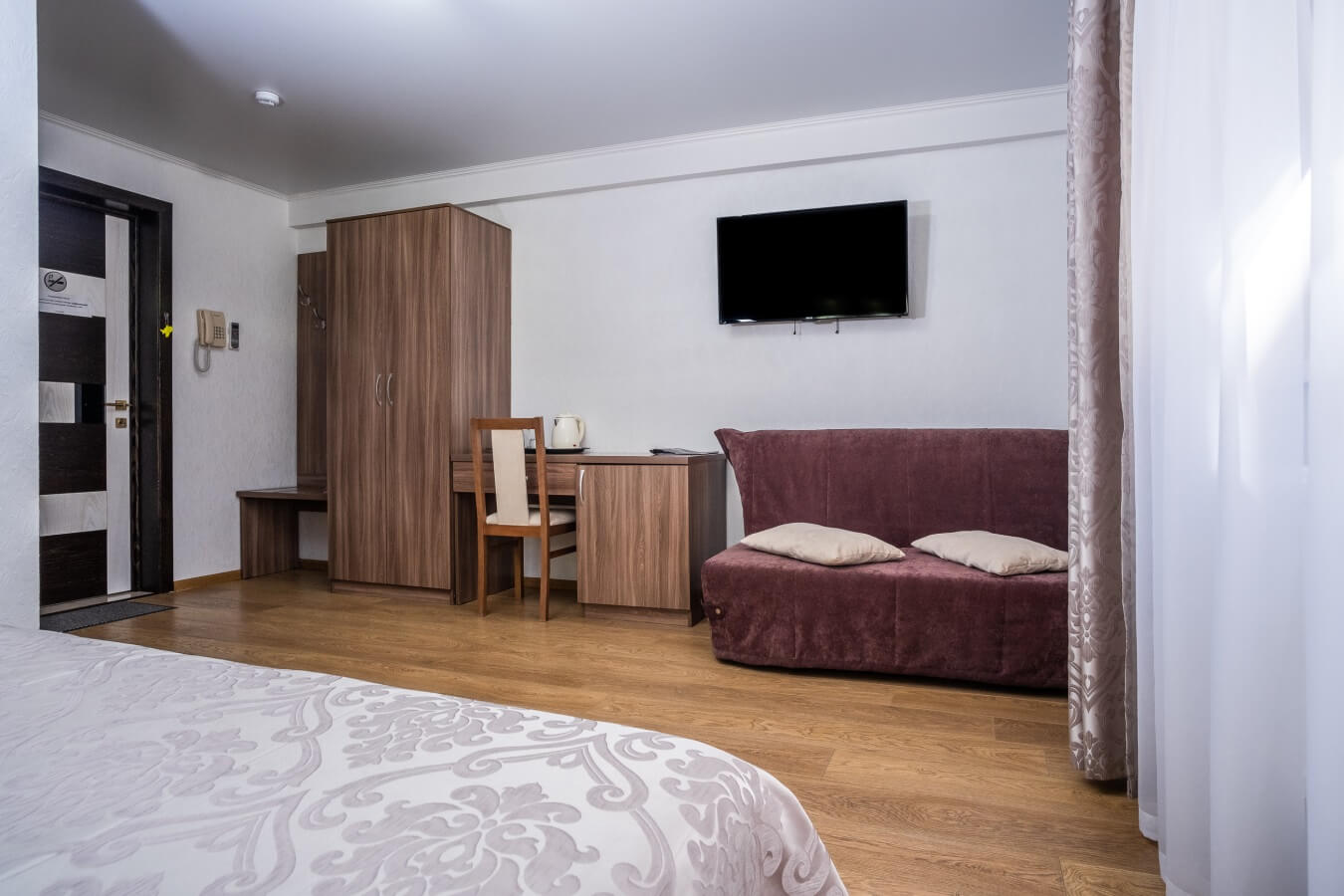 Другое: Wi-Fi бесплатно, смена полотенец, смена постельного белья, уборка номера, услуги внутренней телефонной связи