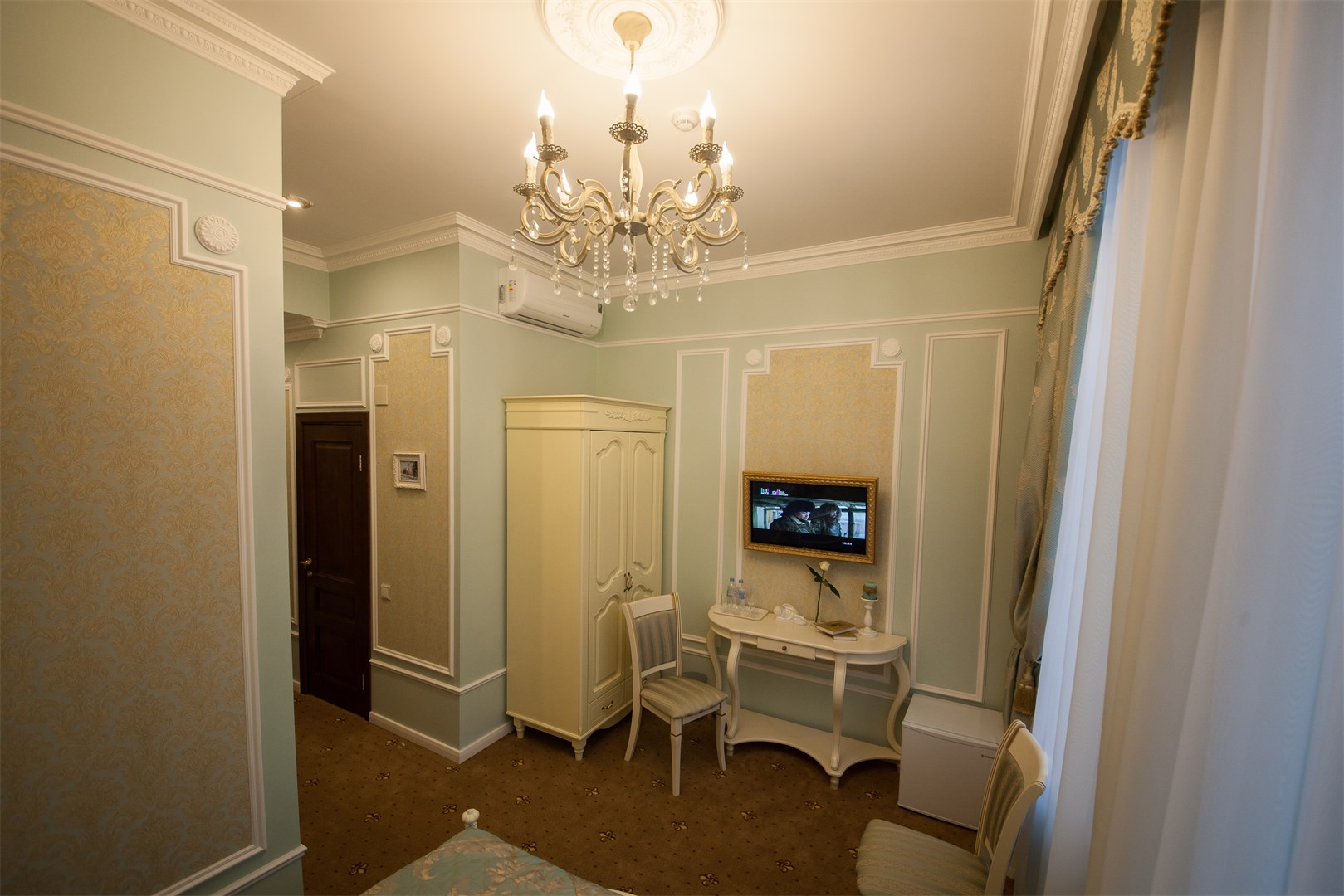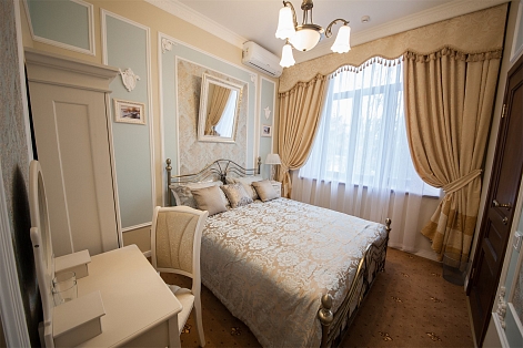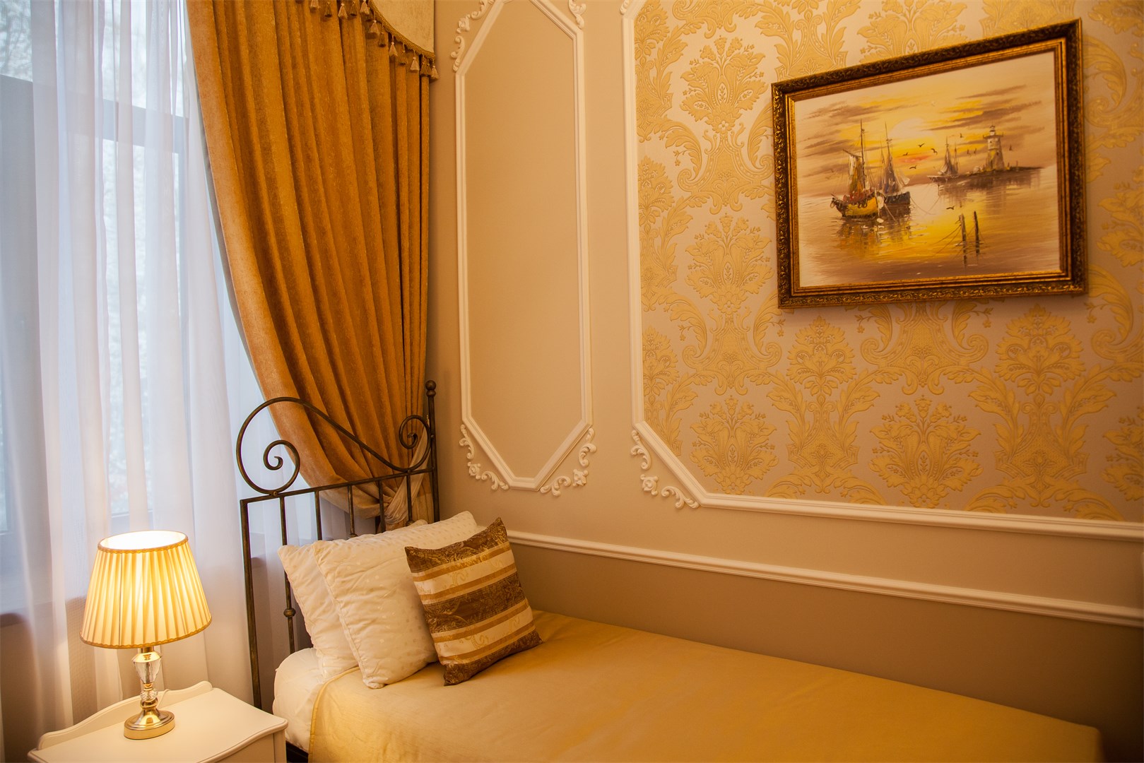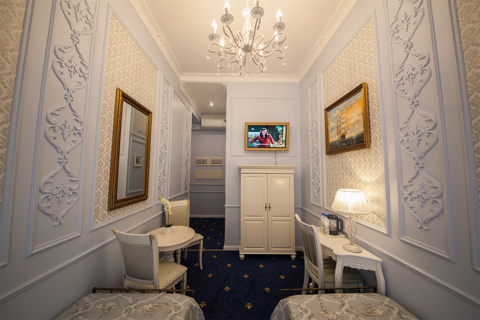 За 5 минут можно доехать до железнодорожного вокзала, дорога до аэропорта в Адлере займет около получаса.Отель разместился в двухэтажном историческом здании, выстроенном в 1905 году, в начале XX века там располагался первый морской порт. Сегодня небольшой жилой фонд, рассчитанный на 32 человек, предлагает гостям отеля комфортабельные однокомнатные и двухкомнатные номера. Номера оформлены в классическом стиле дореволюционной России, в комнатах сохранились исторические элементы интерьера, например, красива лепнина на потолках. В каждом номере есть собственный санузел с душем и необходимая техника: кондиционер, фен, холодильник, телевизор.При отеле работает небольшой уютный ресторанчик-траттория с блюда итальянской кухни. Отдыхающие там могут заказать себе завтраки, ужины и обеды, выпить чай или кофе в течение дня. Гостям доступен беспроводной интернет, услуги прачечной, также на ресепшене можно арендовать автомобиль с личным водителем.В двух минутах ходьбы разместился популярный городской пляж Ривьера. На галечном побережье все предусмотрено для комфортного отдыха: есть навесы, лежаки, шезлонги, раздевалки, много водных развлечений.