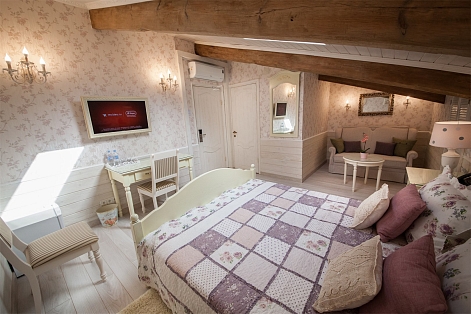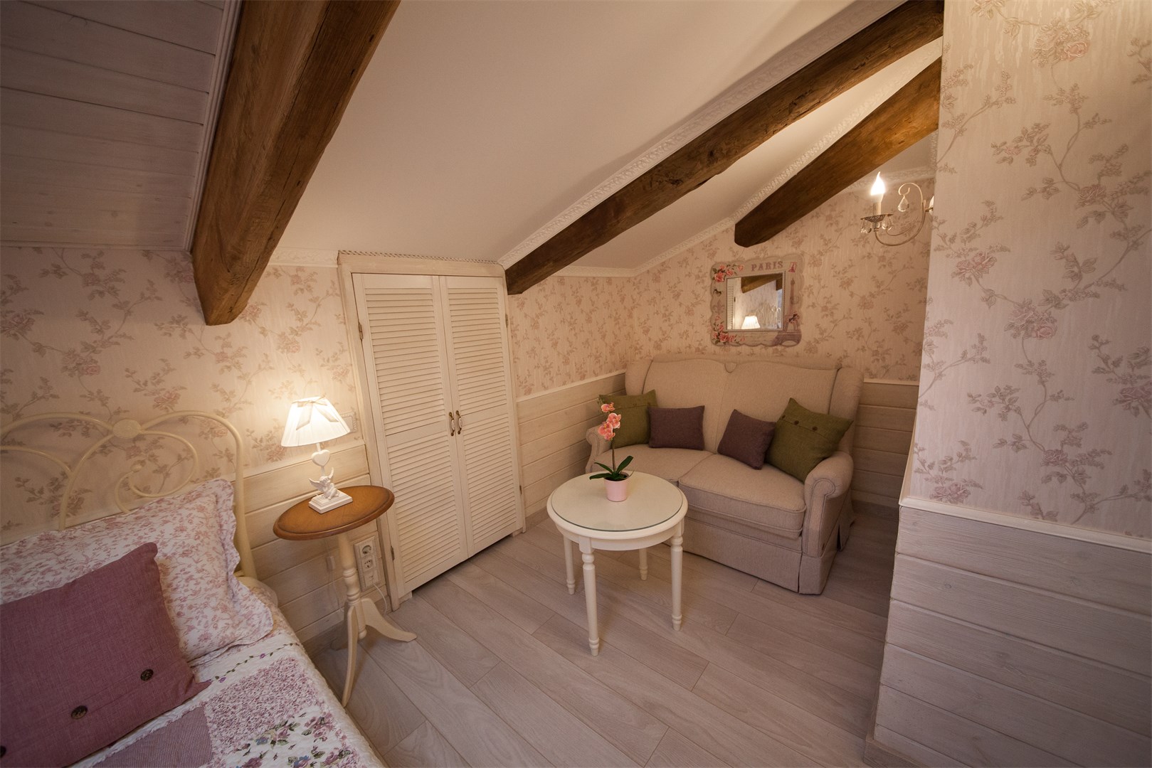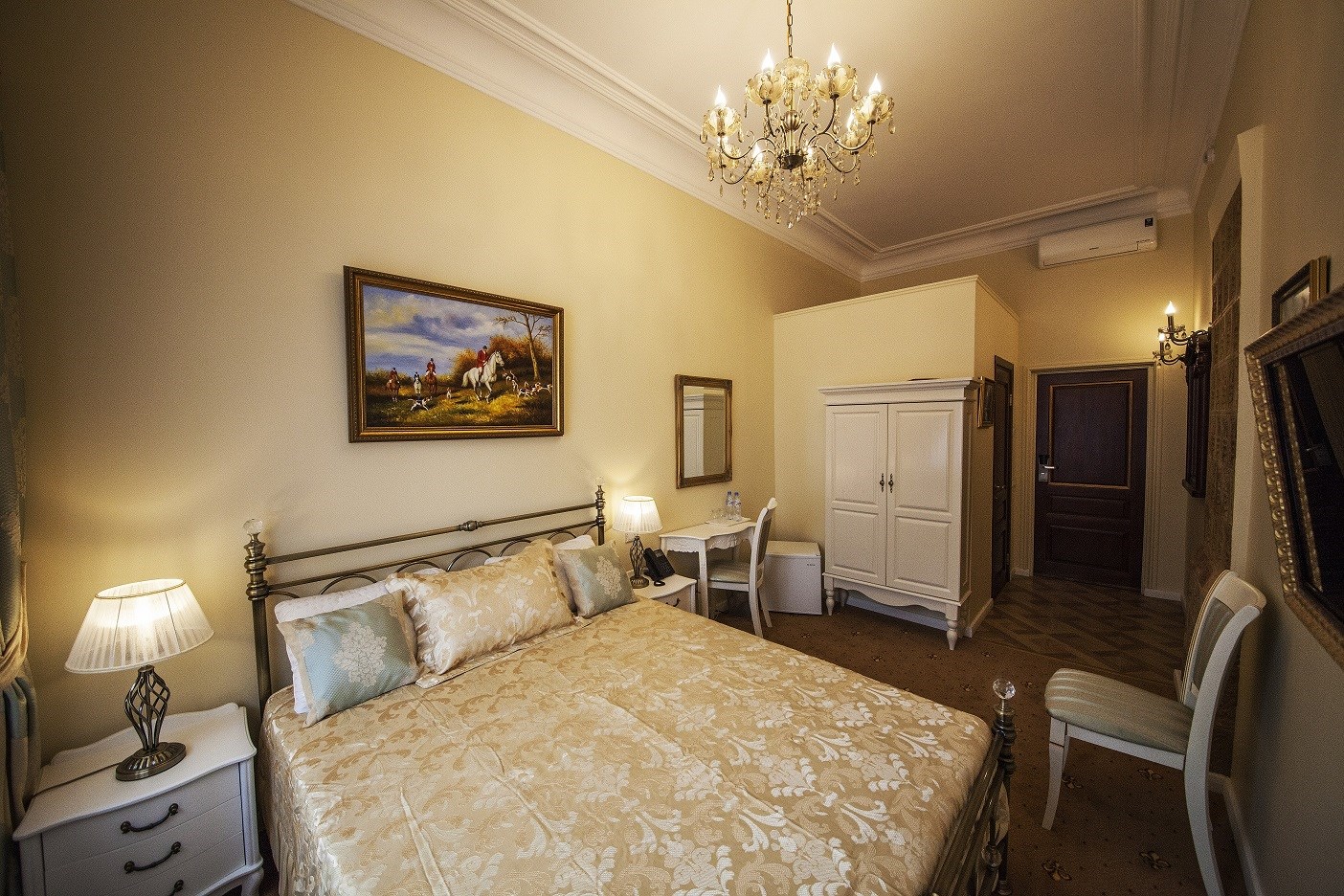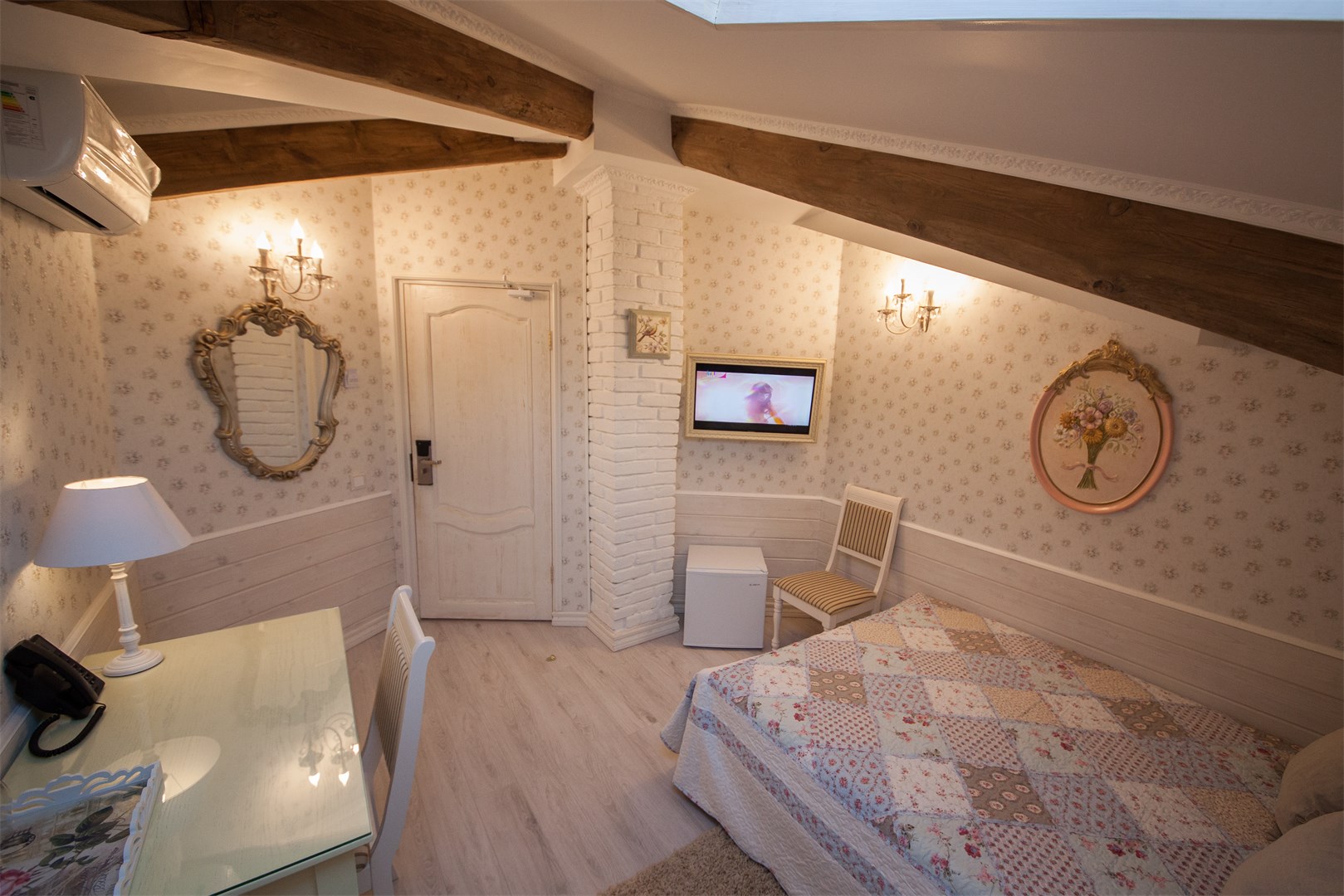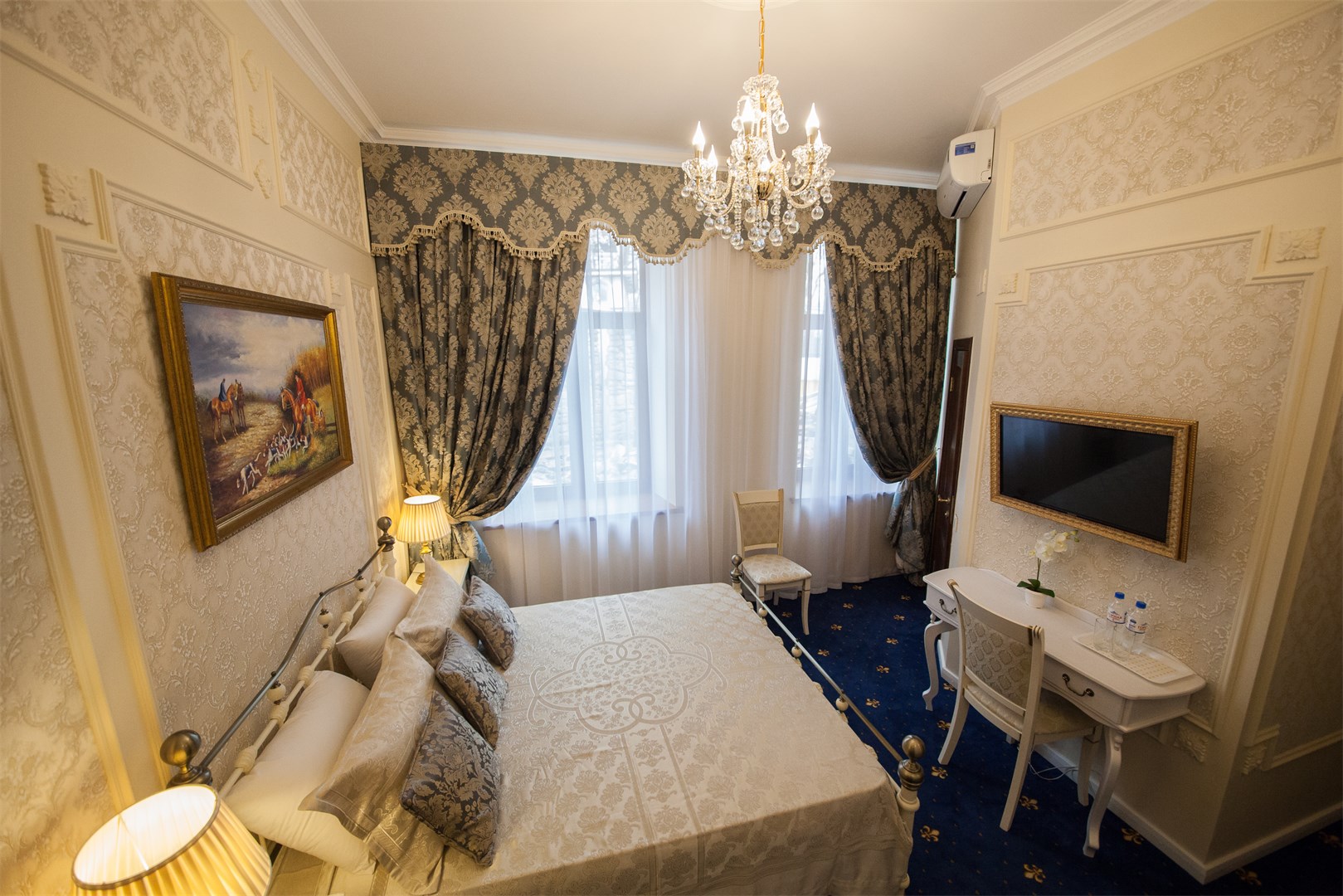 За 5 минут можно доехать до железнодорожного вокзала, дорога до аэропорта в Адлере займет около получаса.Отель разместился в двухэтажном историческом здании, выстроенном в 1905 году, в начале XX века там располагался первый морской порт. Сегодня небольшой жилой фонд, рассчитанный на 32 человек, предлагает гостям отеля комфортабельные однокомнатные и двухкомнатные номера. Номера оформлены в классическом стиле дореволюционной России, в комнатах сохранились исторические элементы интерьера, например, красива лепнина на потолках. В каждом номере есть собственный санузел с душем и необходимая техника: кондиционер, фен, холодильник, телевизор.При отеле работает небольшой уютный ресторанчик-траттория с блюда итальянской кухни. Отдыхающие там могут заказать себе завтраки, ужины и обеды, выпить чай или кофе в течение дня. Гостям доступен беспроводной интернет, услуги прачечной, также на ресепшене можно арендовать автомобиль с личным водителем.В двух минутах ходьбы разместился популярный городской пляж Ривьера. На галечном побережье все предусмотрено для комфортного отдыха: есть навесы, лежаки, шезлонги, раздевалки, много водных развлечений.