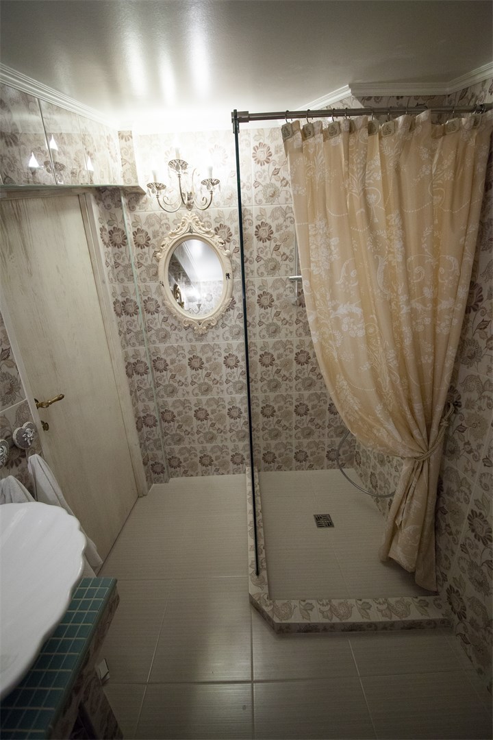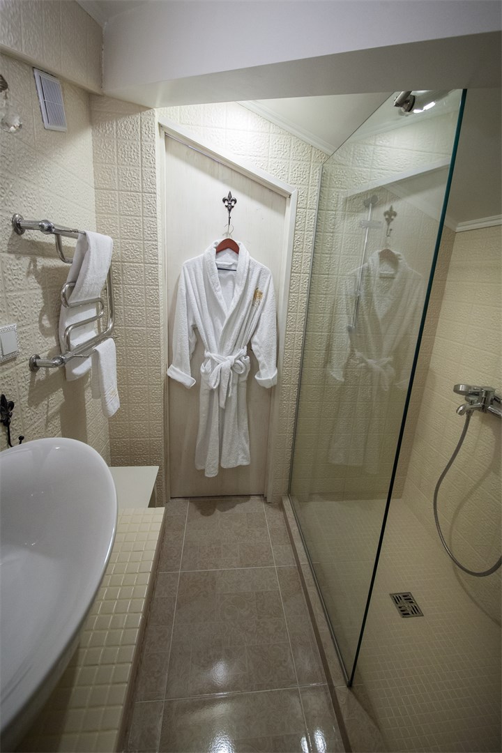 Санузел: с душем, тапочки, туалетные принадлежности, фен, халат