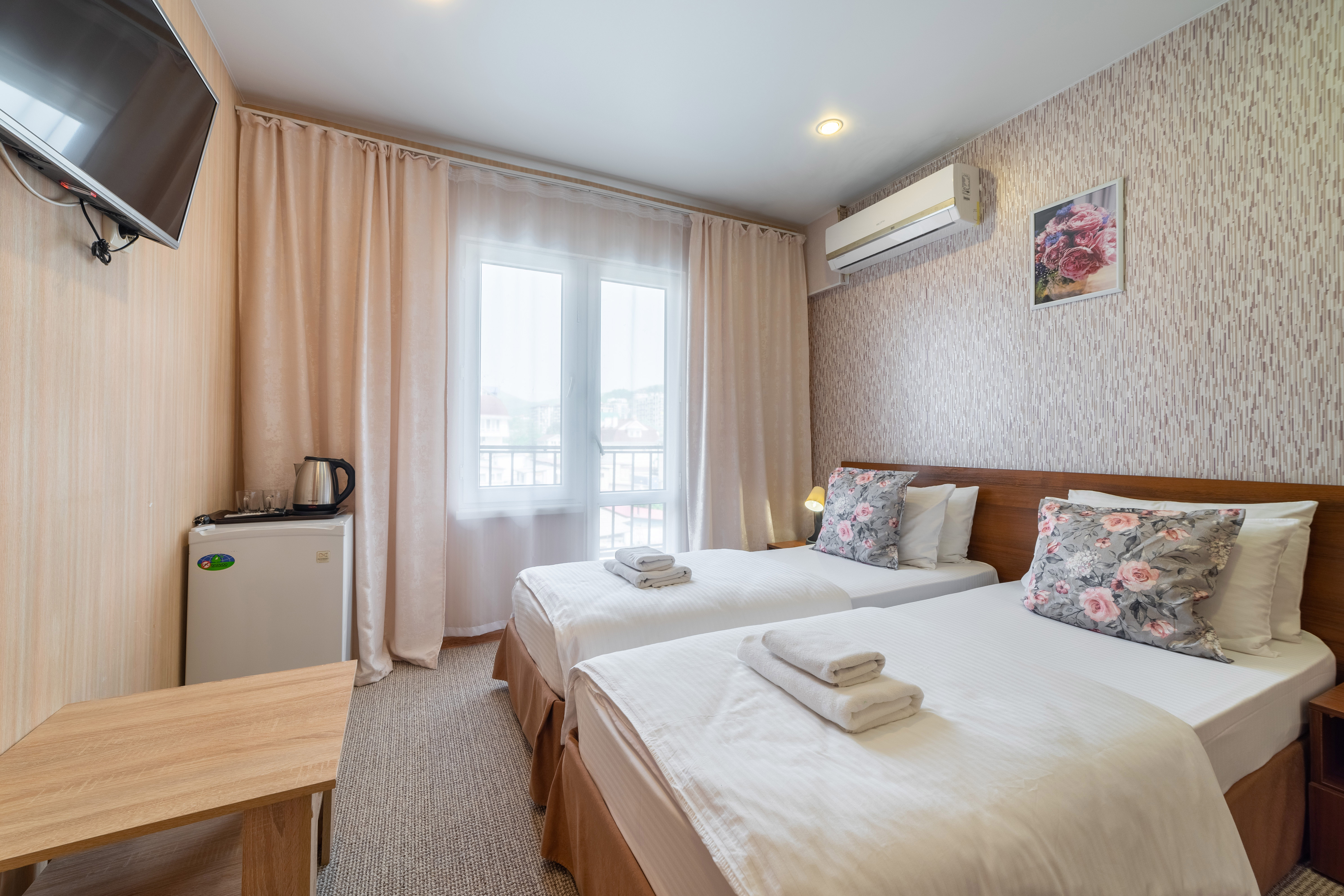До Сочинского железнодорожного вокзала — 7 километров. Дорога до международного аэропорта займет около 30 минут.Пятиэтажный корпус находится на небольшой закрытой территории площадью 1600 кв.м. Жилой фонд, рассчитанный на 100 гостей, предлагает отдыхающим номера Стандарт — Double и Twin. Каждый номер оснащен кондиционером, душем, есть телевизор-ЖК и холодильник.При пансионате работают кафе и столовая, где отдыхающие могут заказать себе комплексное питание. На территории для гостей работает открытый бассейн, доступен Wi-Fi.Всего в 300 метрах расположены обустроенные песчано-галечные пляжи Черноморского побережья с водными развлечениями, барами и кафе.