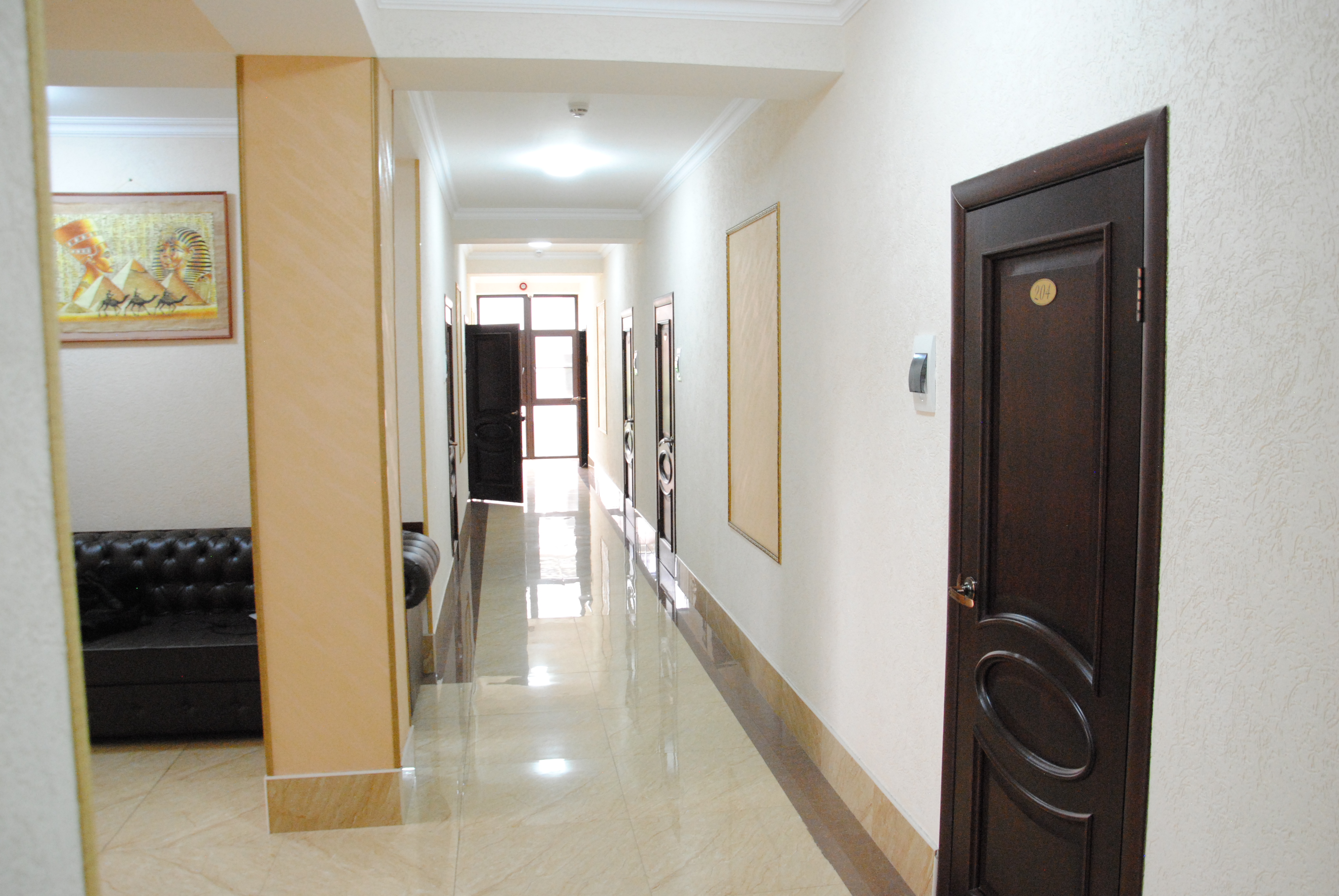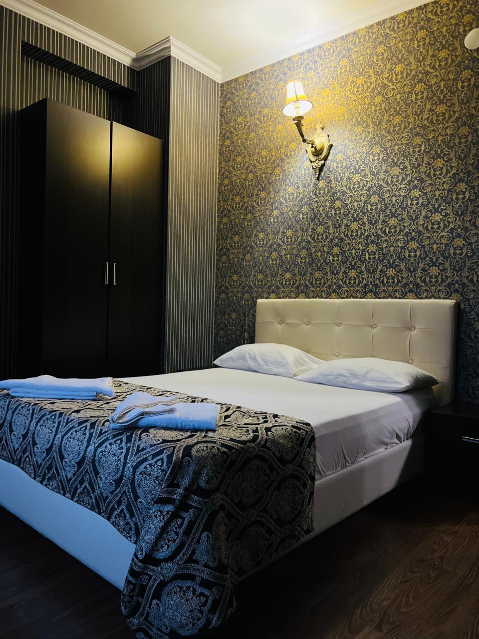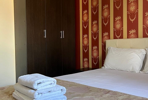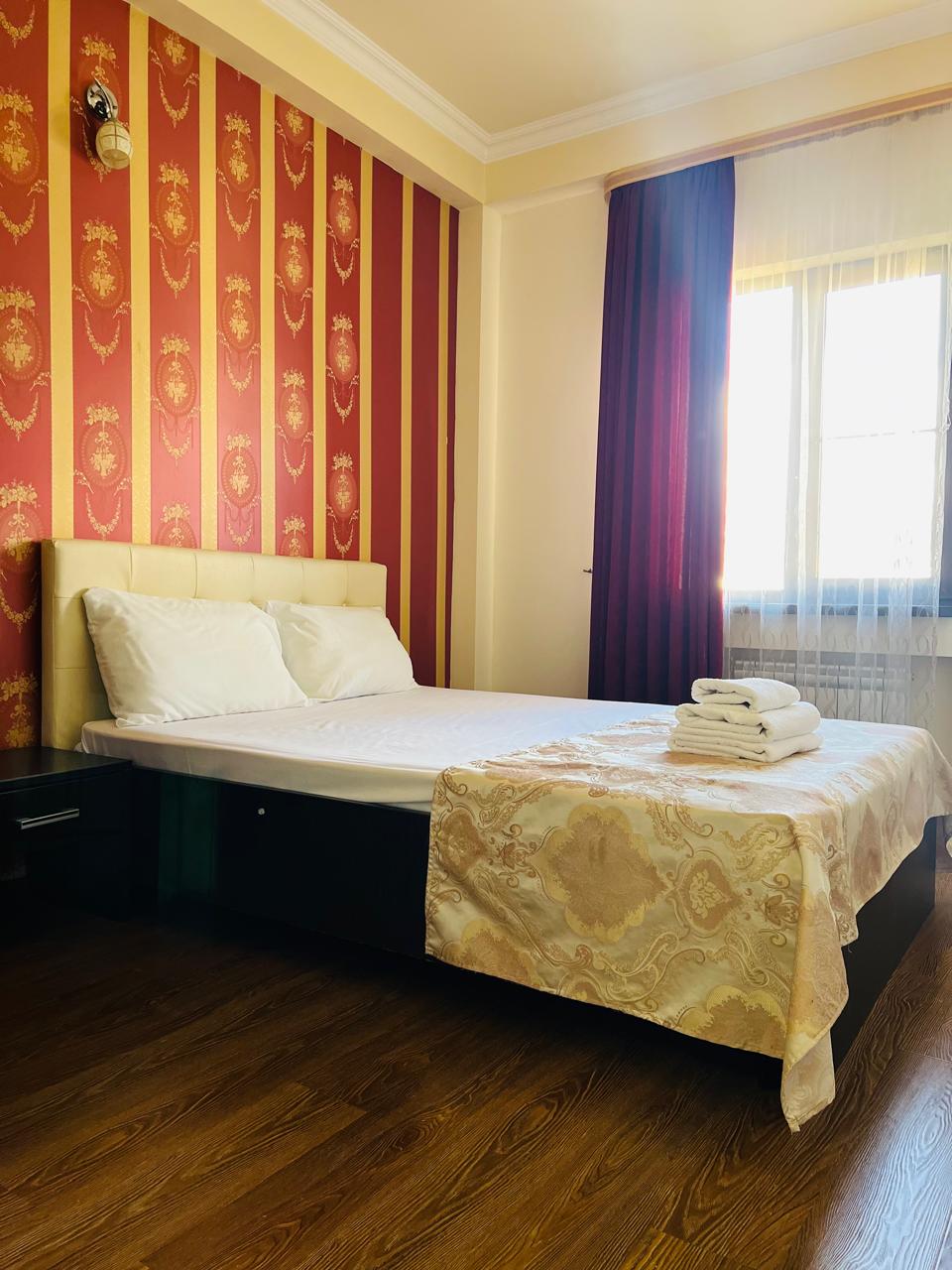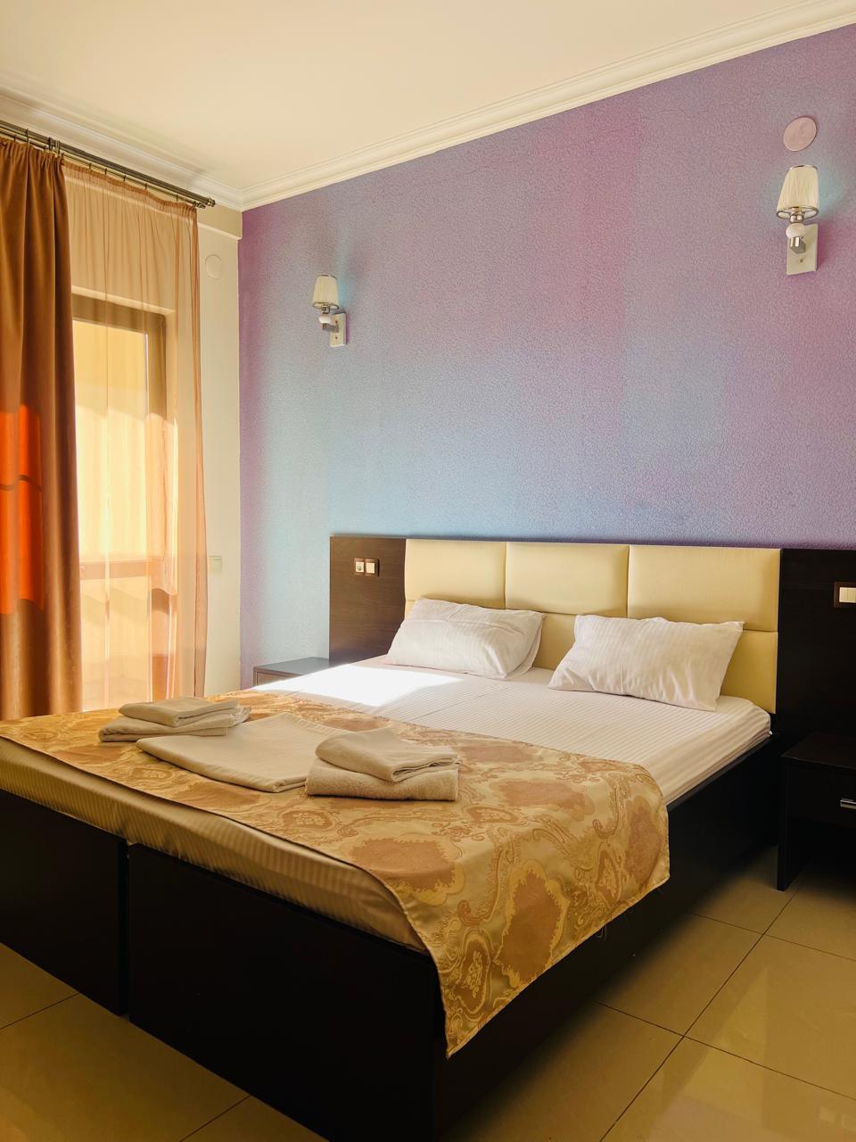 В номере: вешалка, диван раскладной, зеркало, кровать двуспальная, прикроватные тумбочки, шкаф, кондиционер, мини-холодильник, телевизор ЖК, телефон, электрочайник