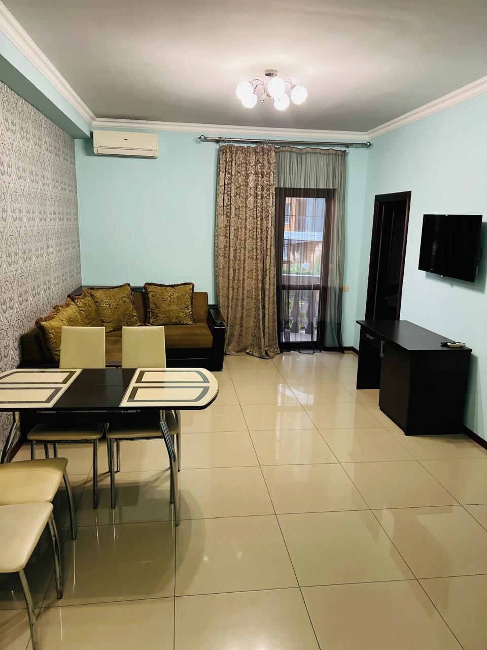В номере: вешалка, диван раскладной, зеркало, кровати односпальные, кровать двуспальная, прикроватные тумбочки, стол, стол обеденный, стулья, шкаф, кондиционер, микроволновая печь, набор посуды, телевизор ЖК, телефон, холодильник, электрочайник