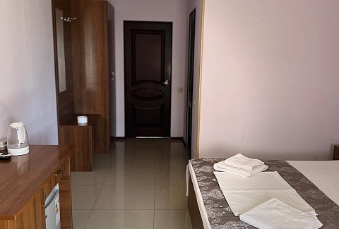 Для тех, кто ценит свежий воздух и живописные виды, некоторые номера оснащены балконами. В каждой ванной комнате предусмотрены душ и санузел, что добавляет уровень удобства и уюта. На территории гостевого дома гости могут расслабиться у открытого бассейна, готовить собственные блюда на общей кухне или устраивать вечерние барбекю в специально отведенной мангальной зоне.Кроме того, в гостевом доме доступны дополнительные услуги, такие как стирка, гладильные принадлежности и камера хранения, что особенно удобно для долгосрочных поездок. Беспроводной интернет Wi-Fi по всей территории позволит оставаться на связи и делиться яркими моментами отдыха с родными и друзьями.Пляжная оборудованная зона расположена всего в нескольких сот метрах.