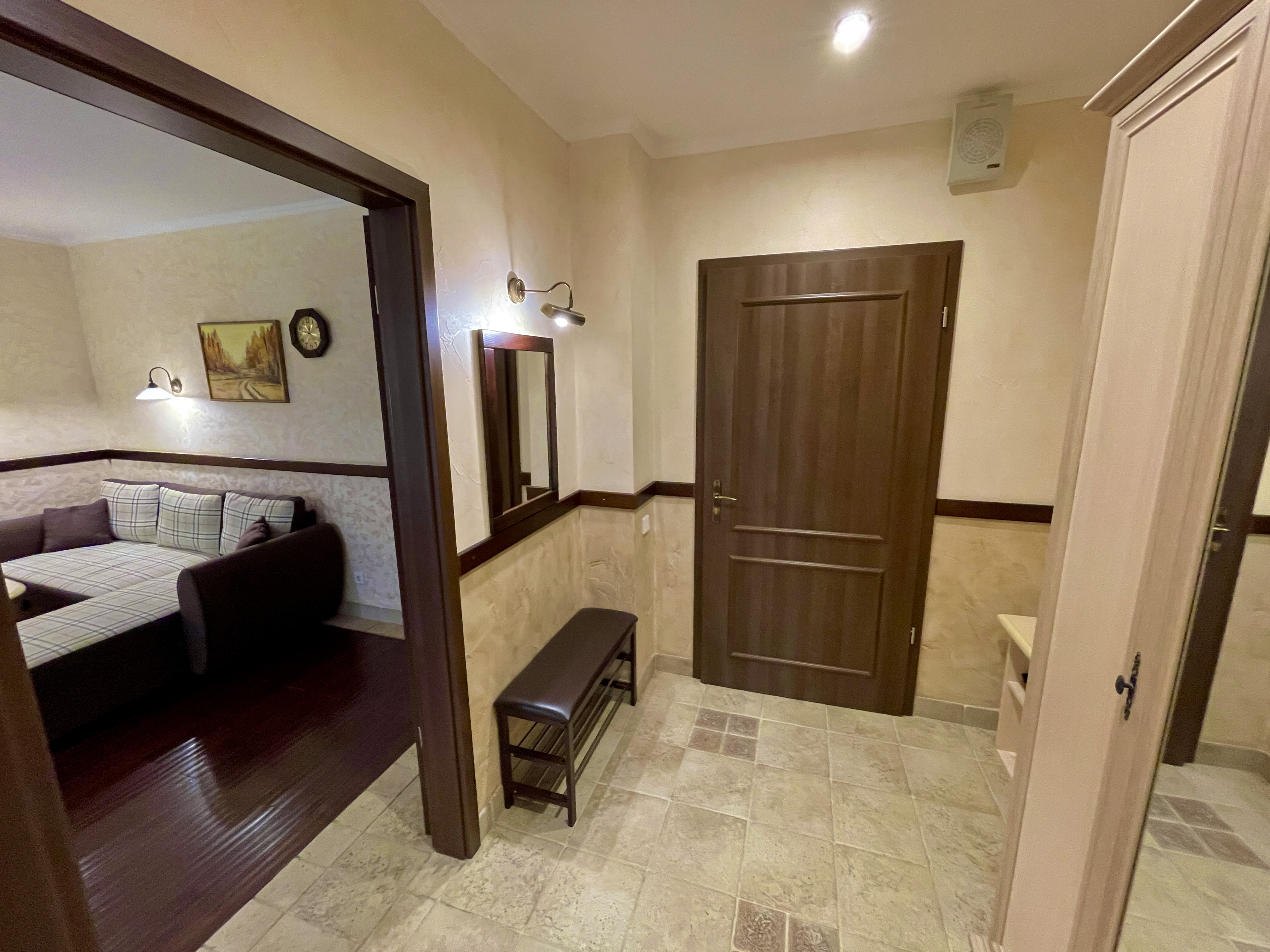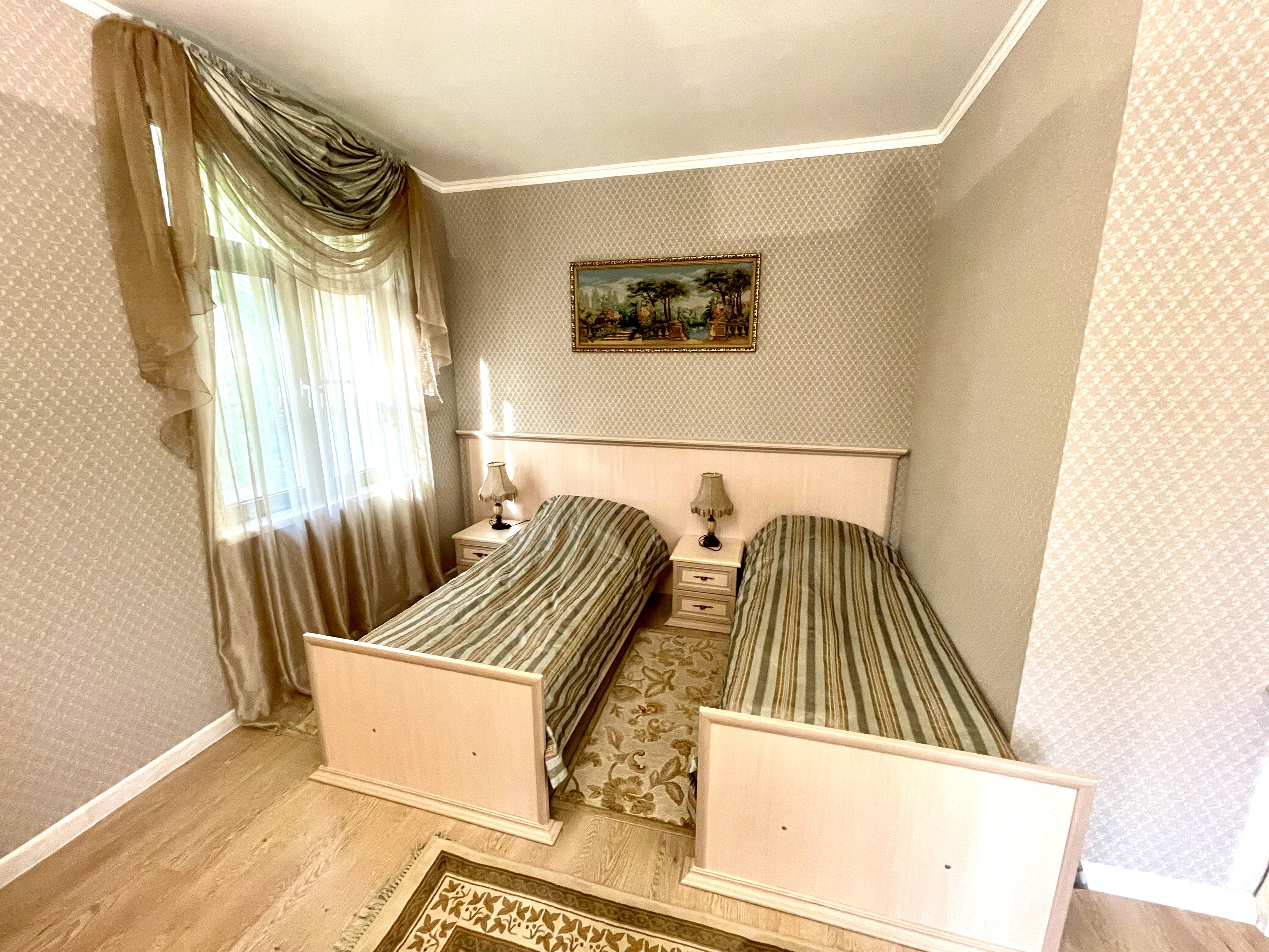 В номере: диван, зеркало, кровать двуспальная, кровать односпальная, прикроватные тумбочки, стол, стул, шкаф встроенный, сейф, телевизор, телефон, утюг, холодильник, электрочайник