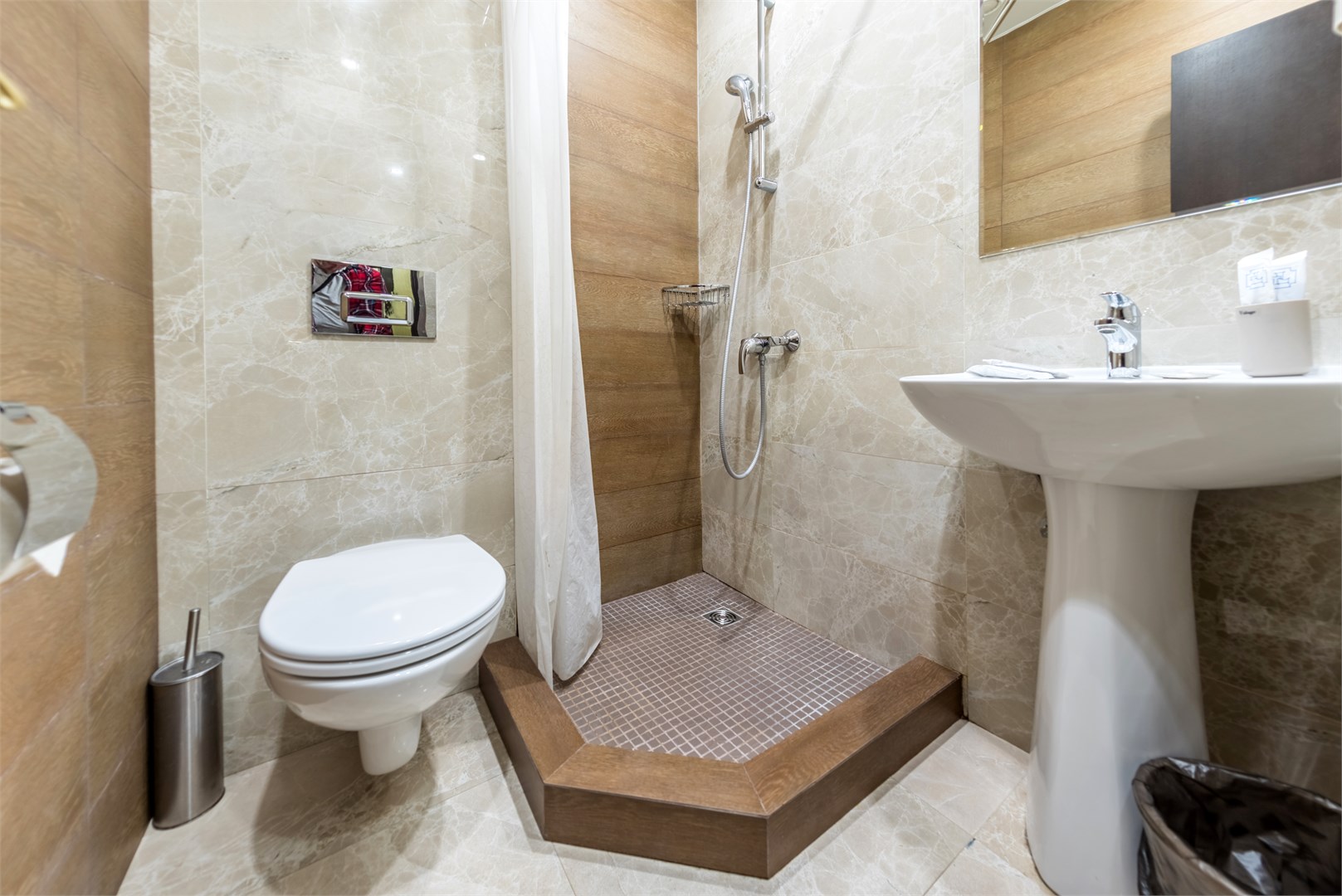 Санузел: с душевой кабиной, туалетные принадлежности, фен