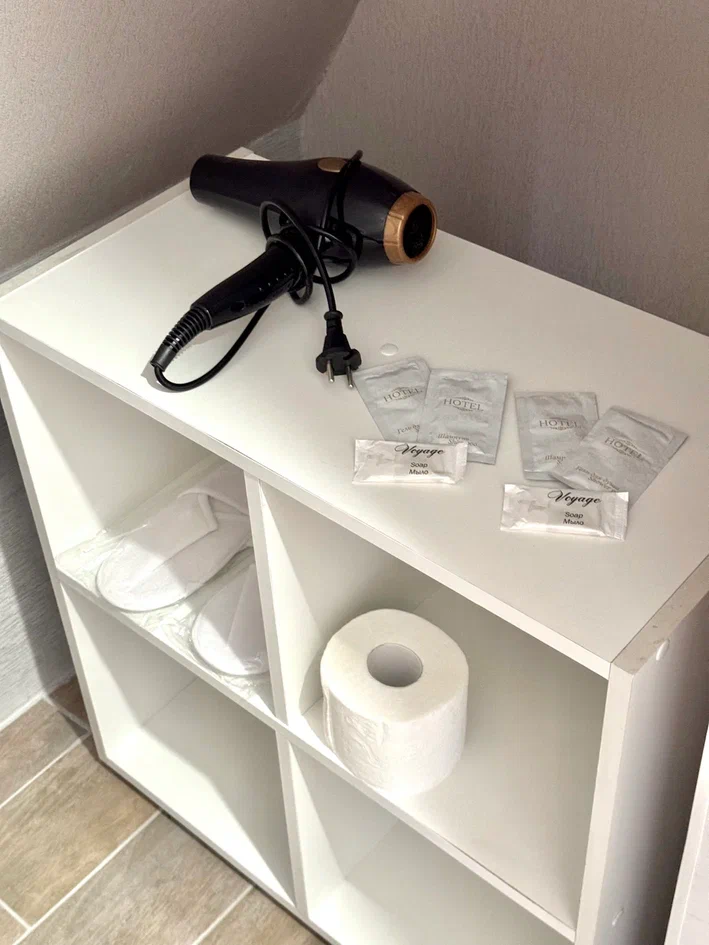 Санузел: с душем, туалетные принадлежности, фен