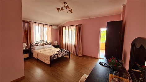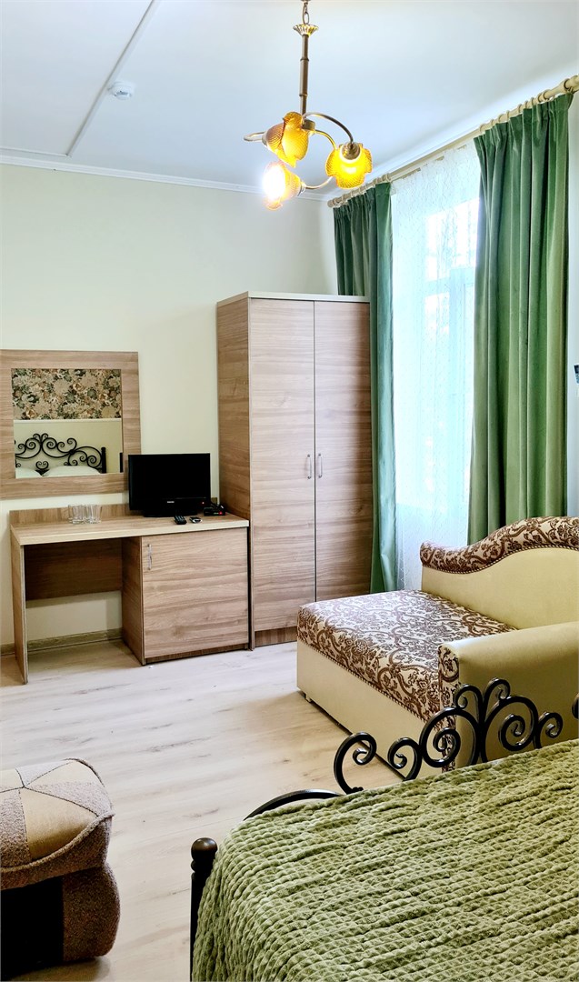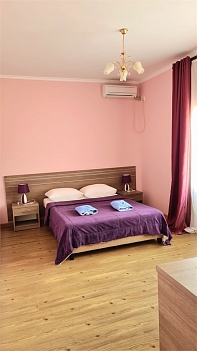 В номере: кресло-кровать, кровать двуспальная, кровать односпальная, прикроватные тумбочки, стол, стулья, шкаф, мини-холодильник, сплит-система, телевизор
