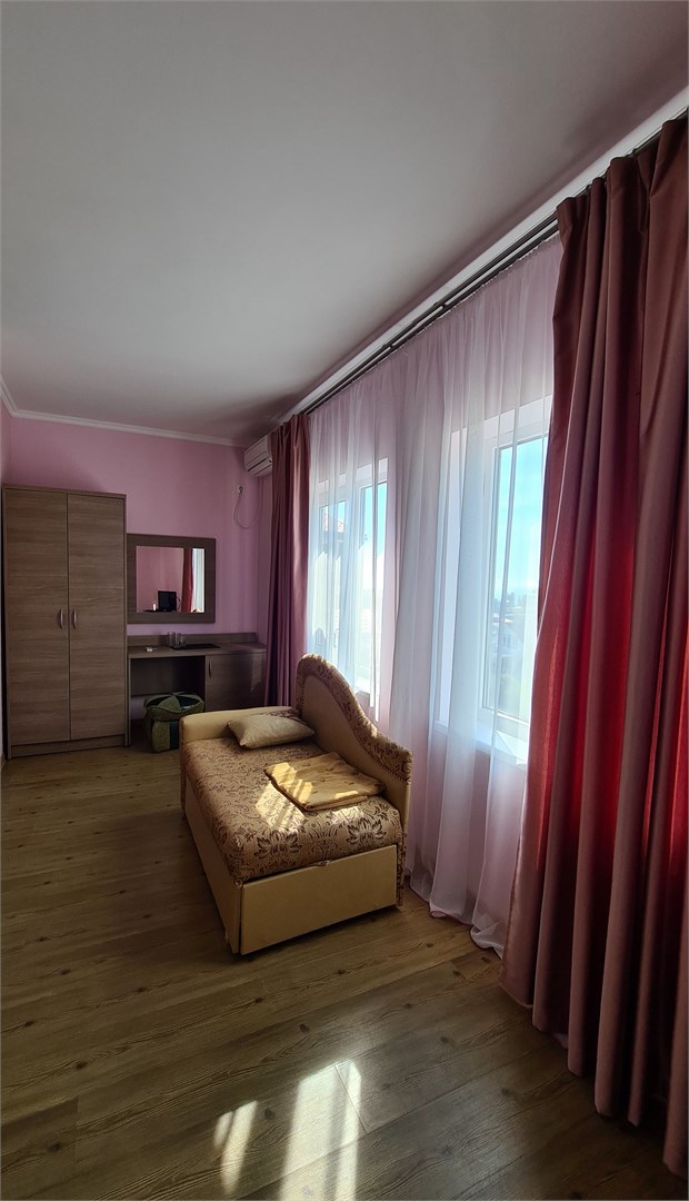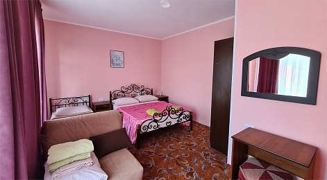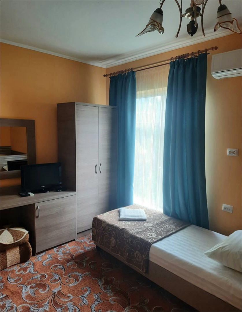 Жилой фонд включает в себя комфортабельные номера разных категорий с балконами и без. Везде предусмотрена сплит-система, телевизор, холодильник и санузел с душем. Для удобства гостей в отеле организована общая кухня, где можно самостоятельно приготовить еду, есть барбекю зона с мангалом. В распоряжении отдыхающих – открытый бассейн и шезлонги для солнечных ванн рядом. Среди прочих услуг – безлимитный интернет и парковка, а для детей предусмотрена игровая площадка с качелями. До побережья и обустроенных пляжей можно дойти за 10 минут.