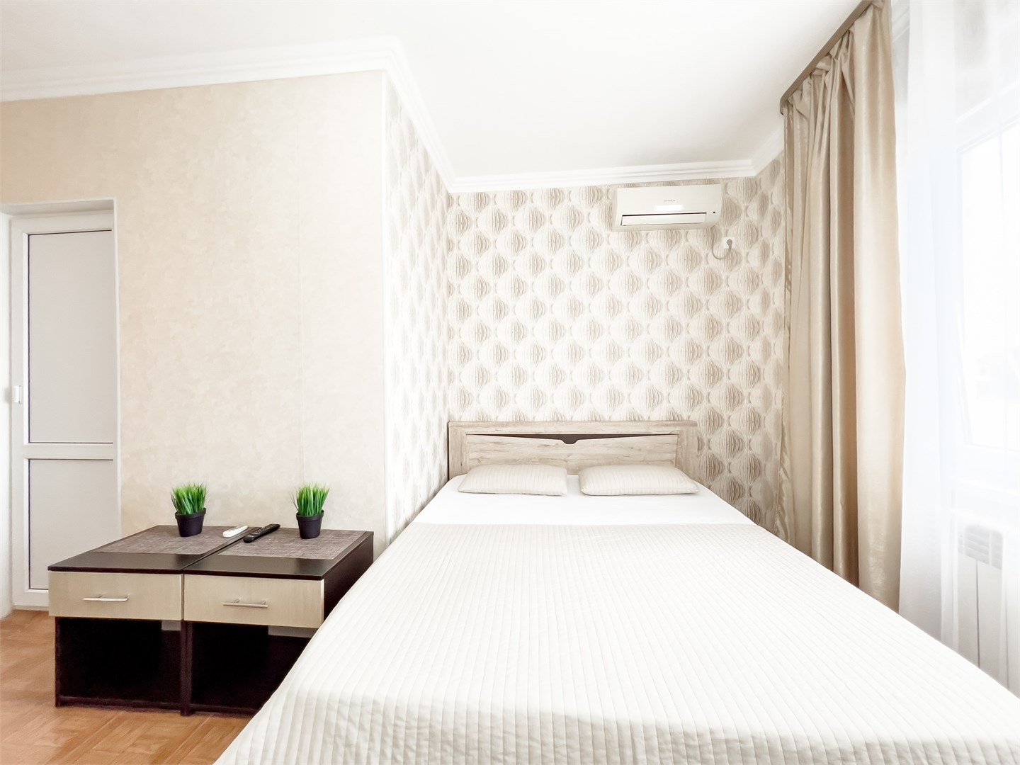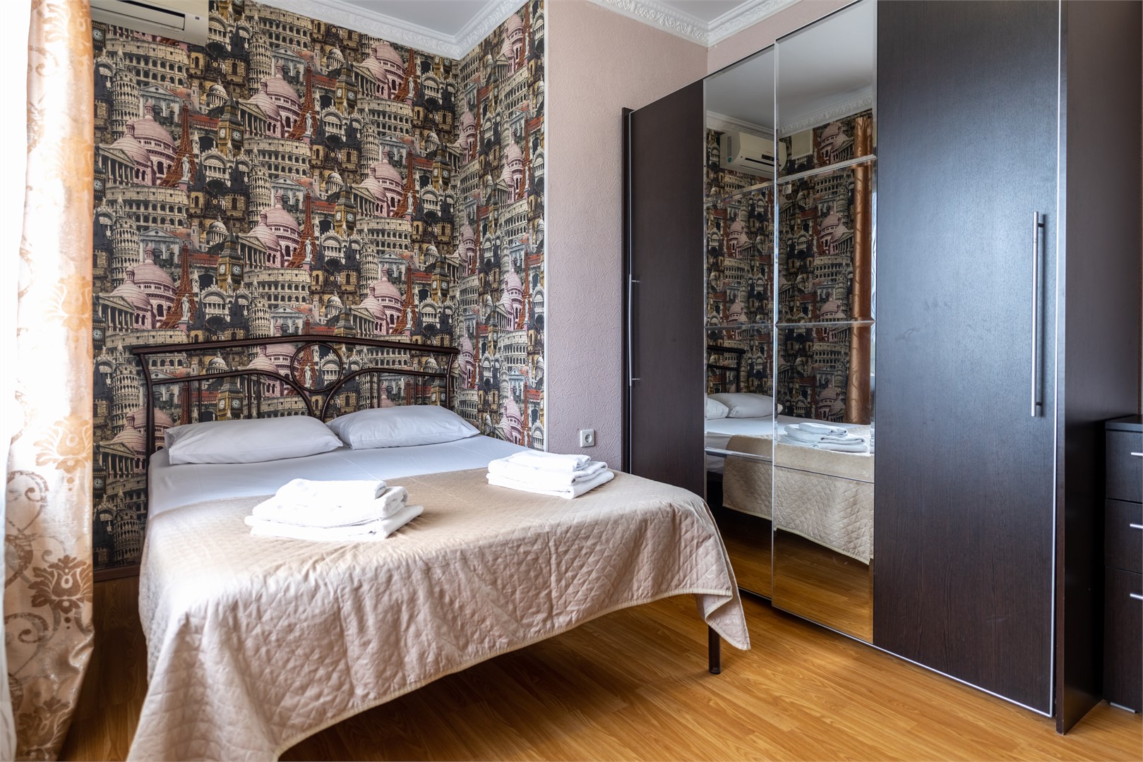 В номере: вешалка, гардеробная, диван раскладной, зеркало, кресло, кровати односпальные, кровать двуспальная, кухонная мебель, набор мягкой мебели, прикроватные тумбочки, пуфик, стол, столик журнальный, столик кофейный, столик туалетный, стулья, тумба, шкаф, гладильная доска, духовой шкаф, кондиционер, микроволновая печь, набор посуды, плита электрическая, стиральная машина, телевизор, утюг, холодильник, электрочайник