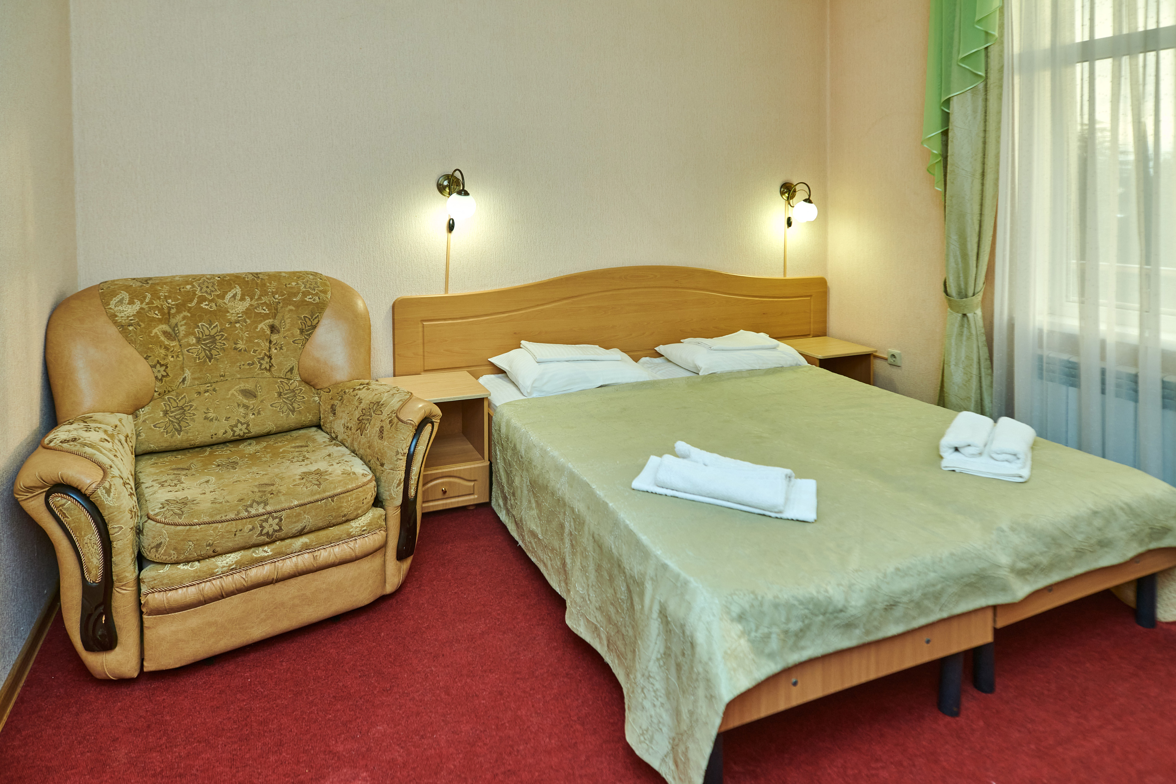 За 15 минут можно доехать до железнодорожного вокзала, откуда регулярно отправляются скоростные электрички на курорты Красной Поляны, а до международного аэропорта — 11 километров.Четырехэтажный корпус отеля разместился всего в 300 метрах от моря. В распоряжении гостей двух- и четырехместные номера с удобствами. Помимо собственного санузла и душа, в каждой комнате установлена сплит-система, есть электрочайник, телевизор и небольшой холодильник. Отдыхающим доступны услуги прачечной, сеть wi-fi и аренда детских кроваток, которая доступна при предварительном запросе.До галечного пляжа всего 5 минут ходьбы. Пляж оборудован шезлонгами, теневыми навесами и кабинками для переодевания.