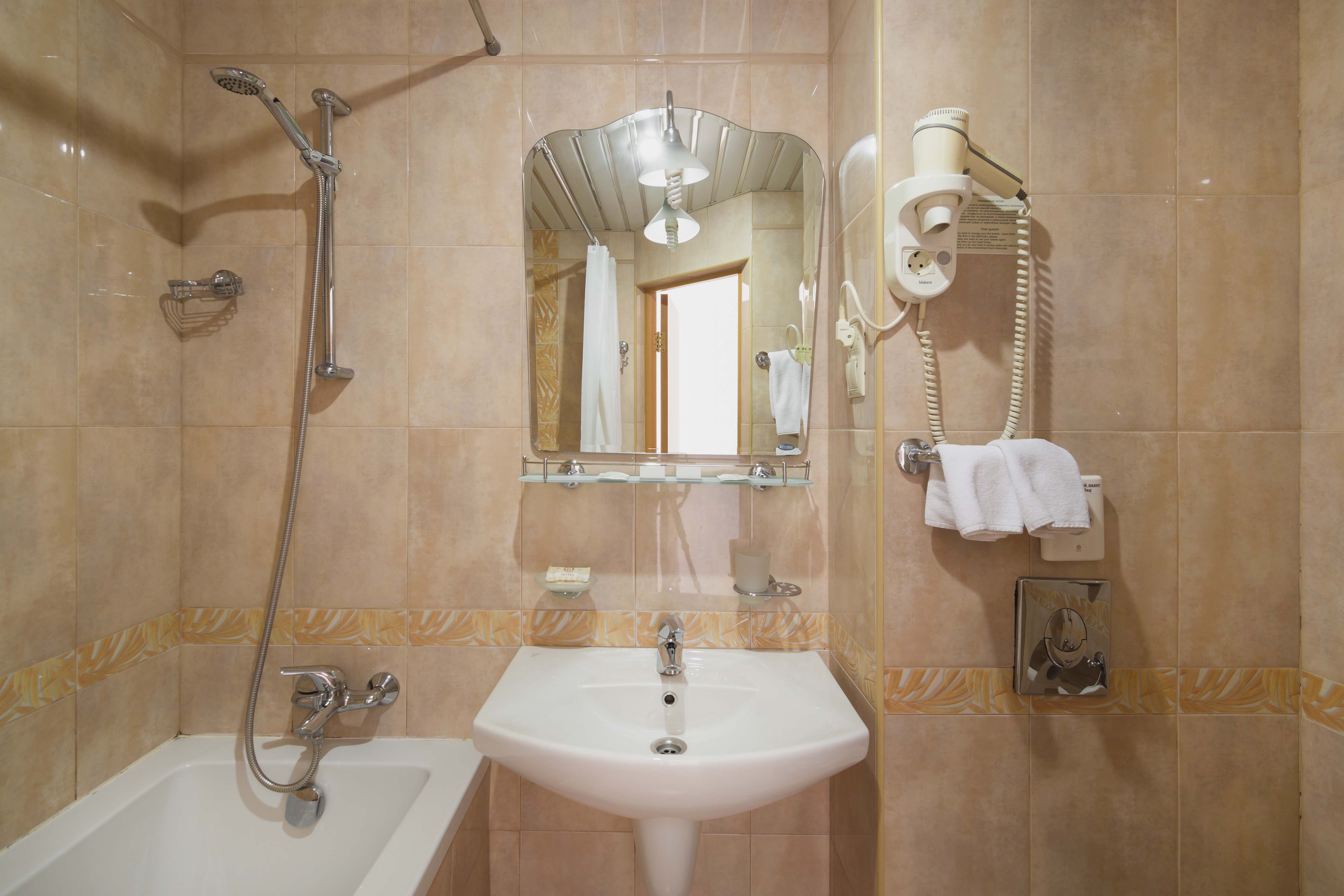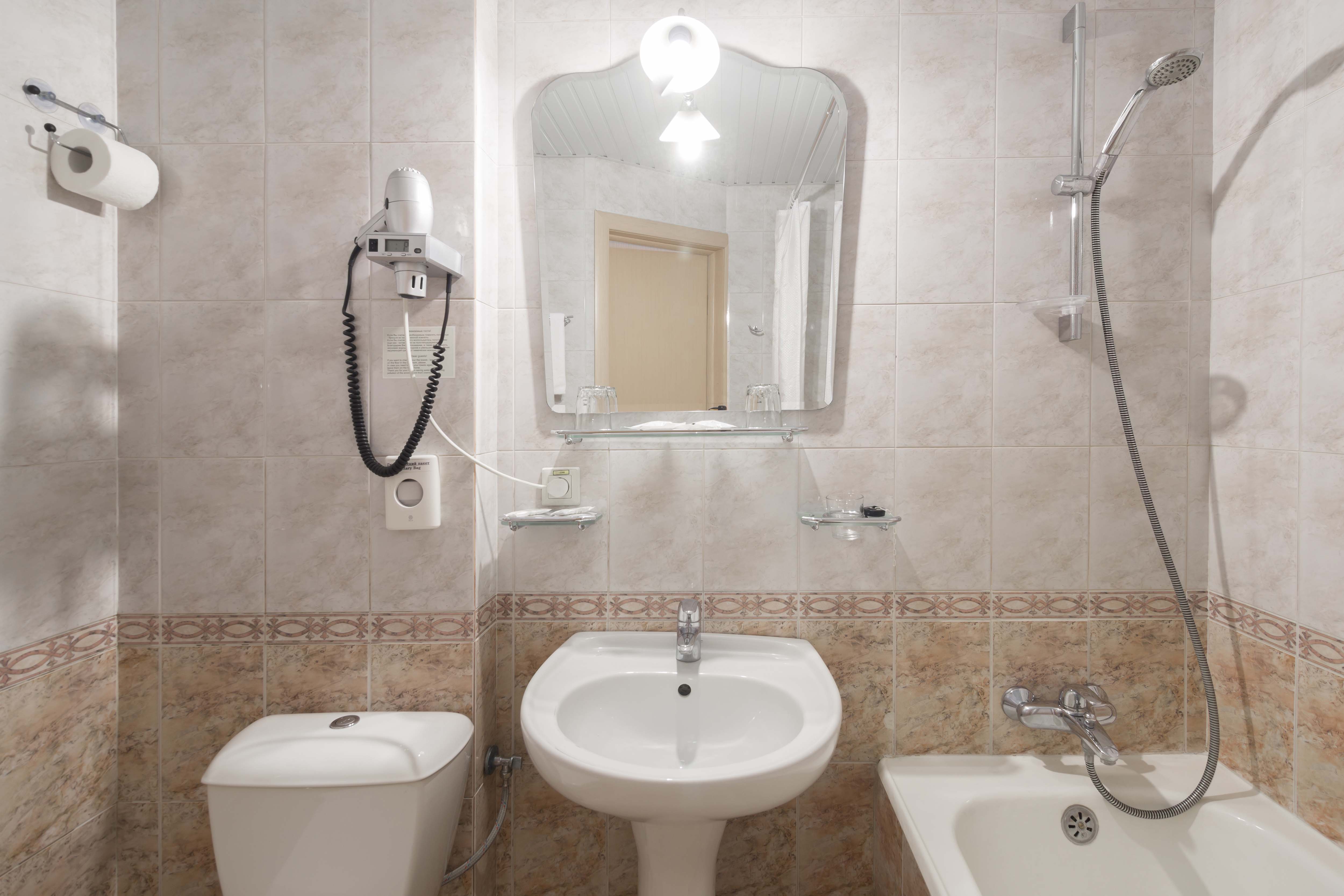Санузел: с душем или ванной, туалетные принадлежности, фен