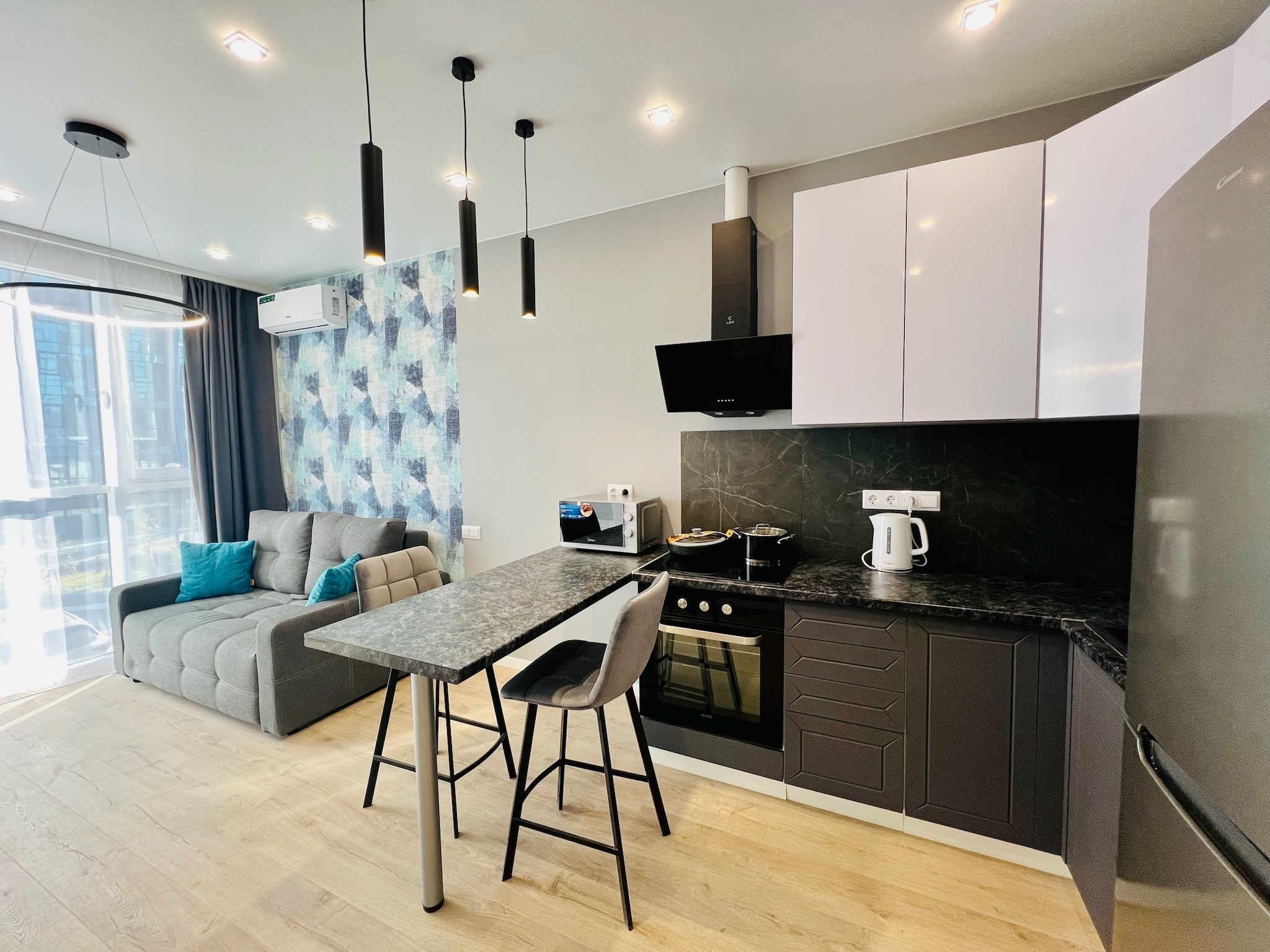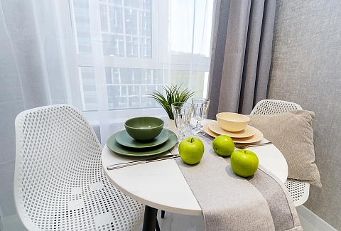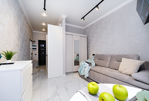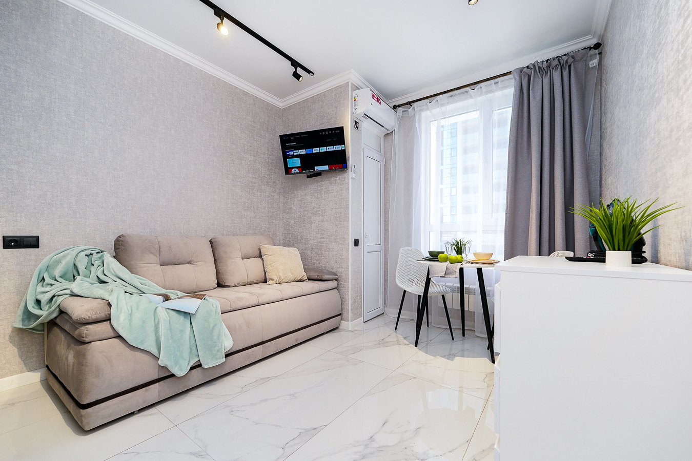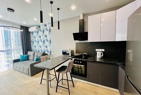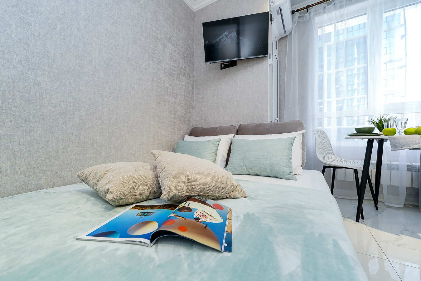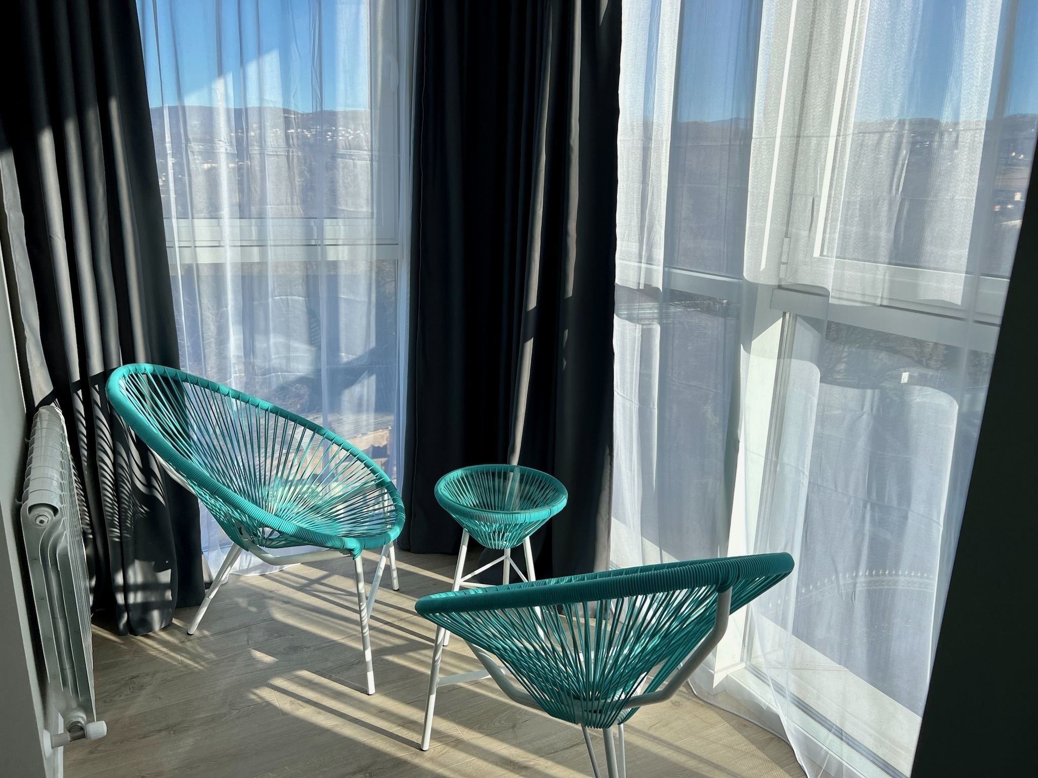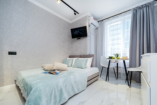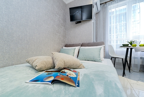 Район удобен для поездок к основным достопримечательностям: железнодорожный вокзал Сочи — примерно 10 минут на автомобиле, Олимпийский парк и аэропорт Сочи — около 40 минут, Красная Поляна — около часа десяти минут. Городские пляжи и парк «Дендрарий» находятся в 7 минутах езды.Для размещения предлагается два варианта. Первый — светлая студия площадью 22 квадратных метра, рассчитанная на двух гостей. Второй — более просторная двухкомнатная студия площадью 40 квадратных метров, которая комфортно вмещает до четырёх человек. В обоих вариантах предусмотрены большие панорамные окна с видом на Сочинский национальный парк и Кавказский хребет, а также столик с креслом, чтобы не спеша созерцать окружающую природу. В каждом номере — современная кухня с встраиваемой варочной панелью, духовым шкафом, холодильником, вытяжкой, микроволновой печью, чайником, а также полным набором посуды и кухонных принадлежностей. Оборудована обеденная зона.Для сна в студии на 22 м² предусмотрена одна большая кровать с ортопедическим матрасом. В варианте на 40 м² — изолированная спальня с такой же кроватью и дополнительный двуспальный раскладной диван. В обоих случаях есть вместительный шкаф для вещей, ЖК-телевизор с голосовым помощником, быстрый стабильный Wi-Fi, два кондиционера, стиральная машина, фен, утюг, гладильная доска и сушилка для белья. Совмещённый санузел оснащён душем, туалетом, большим зеркалом с подсветкой. В стоимость проживания включены постельное бельё, полотенца, разовый гигиенический набор (мыло, гель для душа, шампунь), а также средство для мытья посуды.