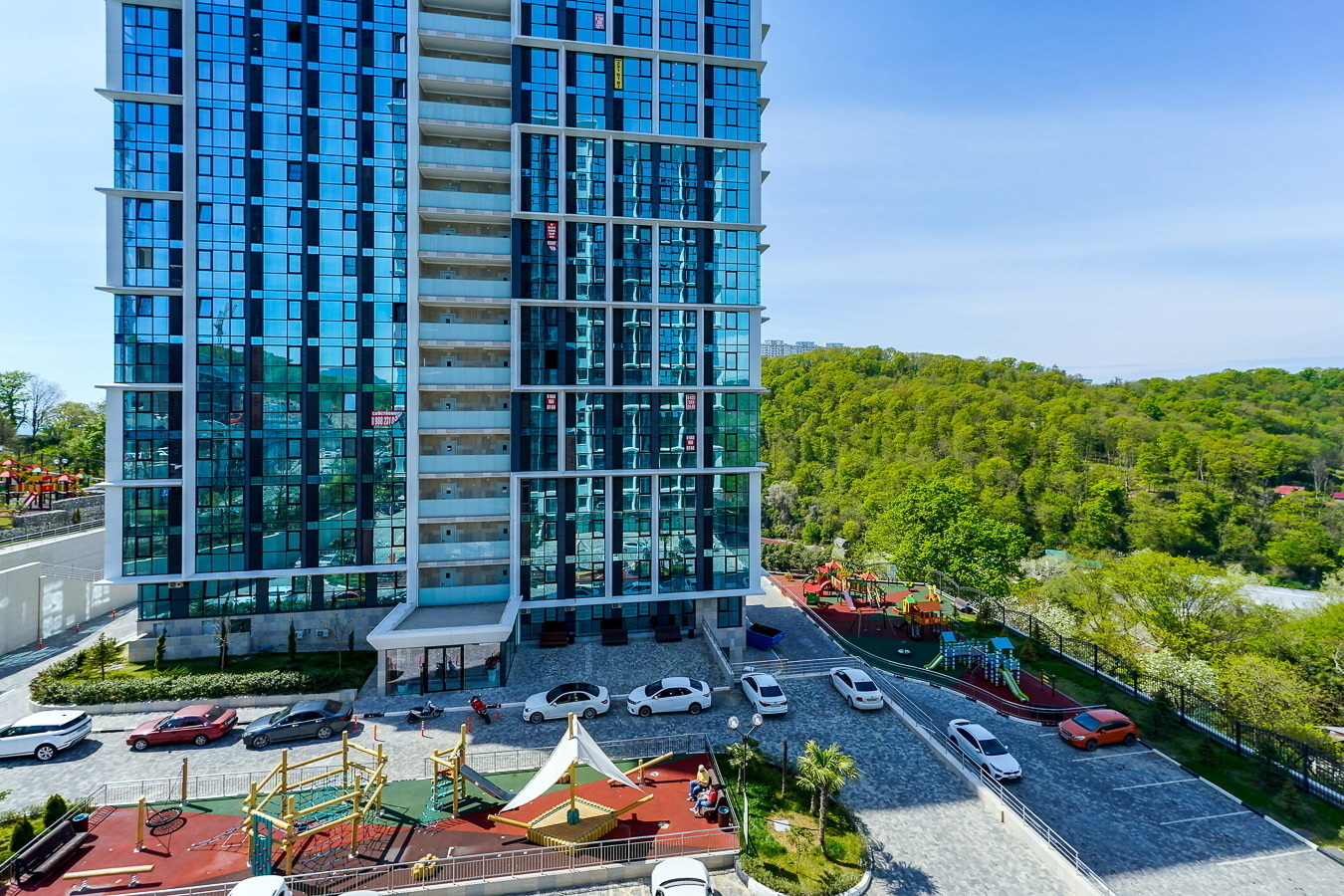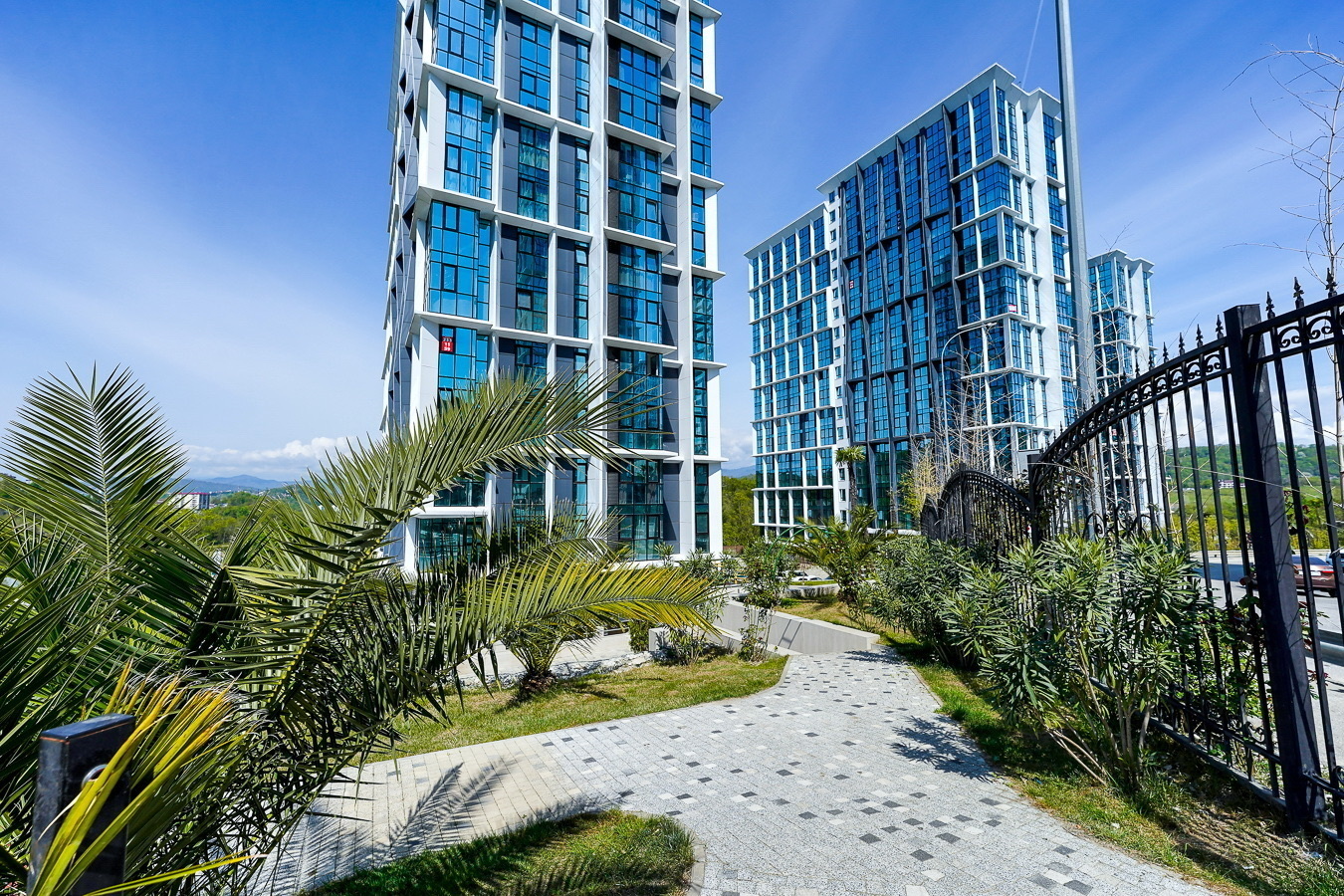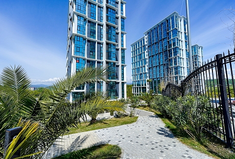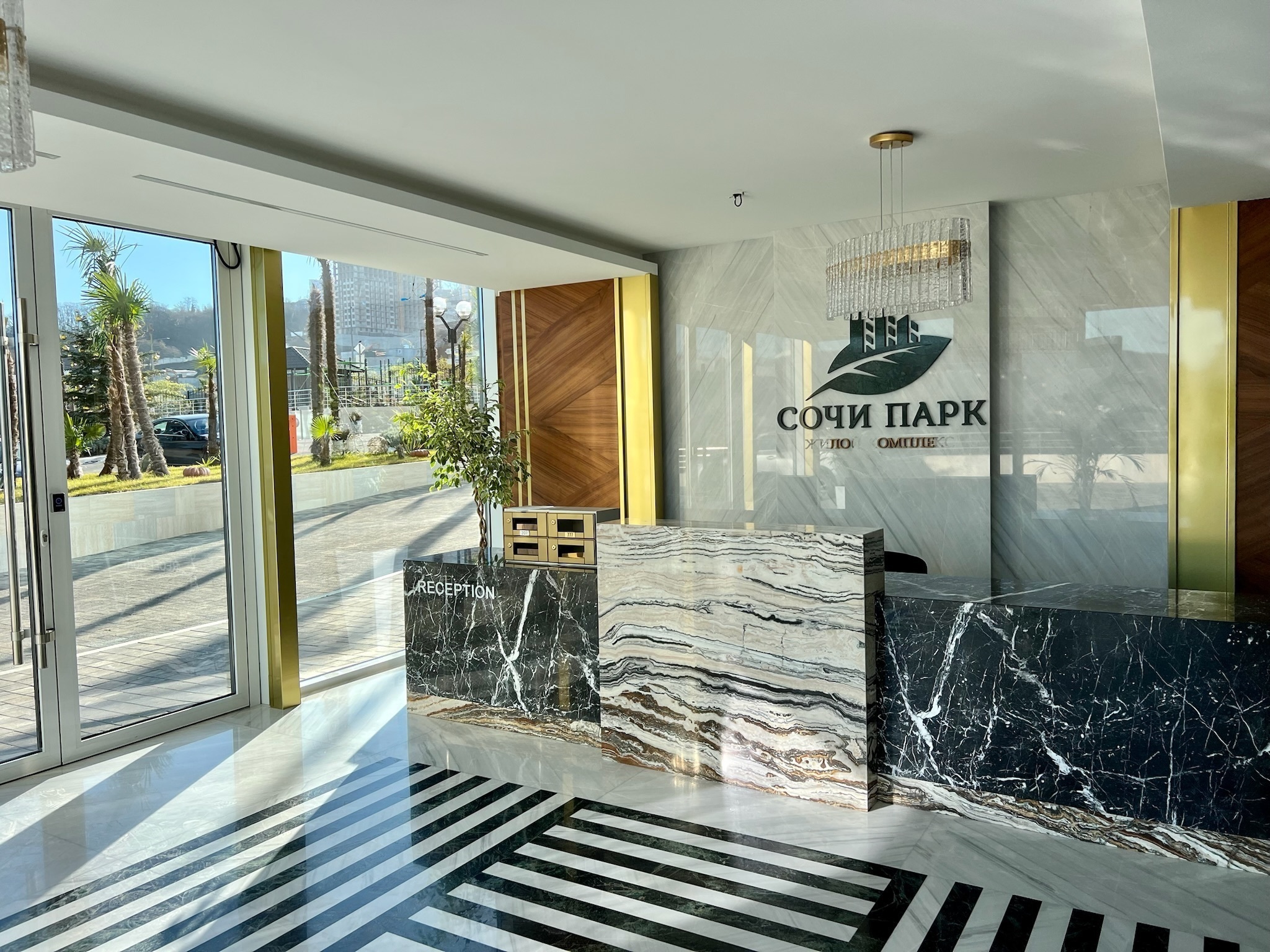 Это пространство расположено в жилом комплексе бизнес-класса «Сочи-парк», в новом районе Сочи. Из окон открываются виды на море, горы и окрестности города. Апартаменты продуманы для тех, кто ценит комфорт и эстетику, — пребывание здесь оставляет только яркие и положительные впечатления.На территории комплекса предусмотрены бизнес-центр, гастро-корт, супермаркет с кулинарией и кофейней, спортивные и детские площадки, зоны отдыха, мангальная зона, а также открытые террасы с газоном и живыми насаждениями.