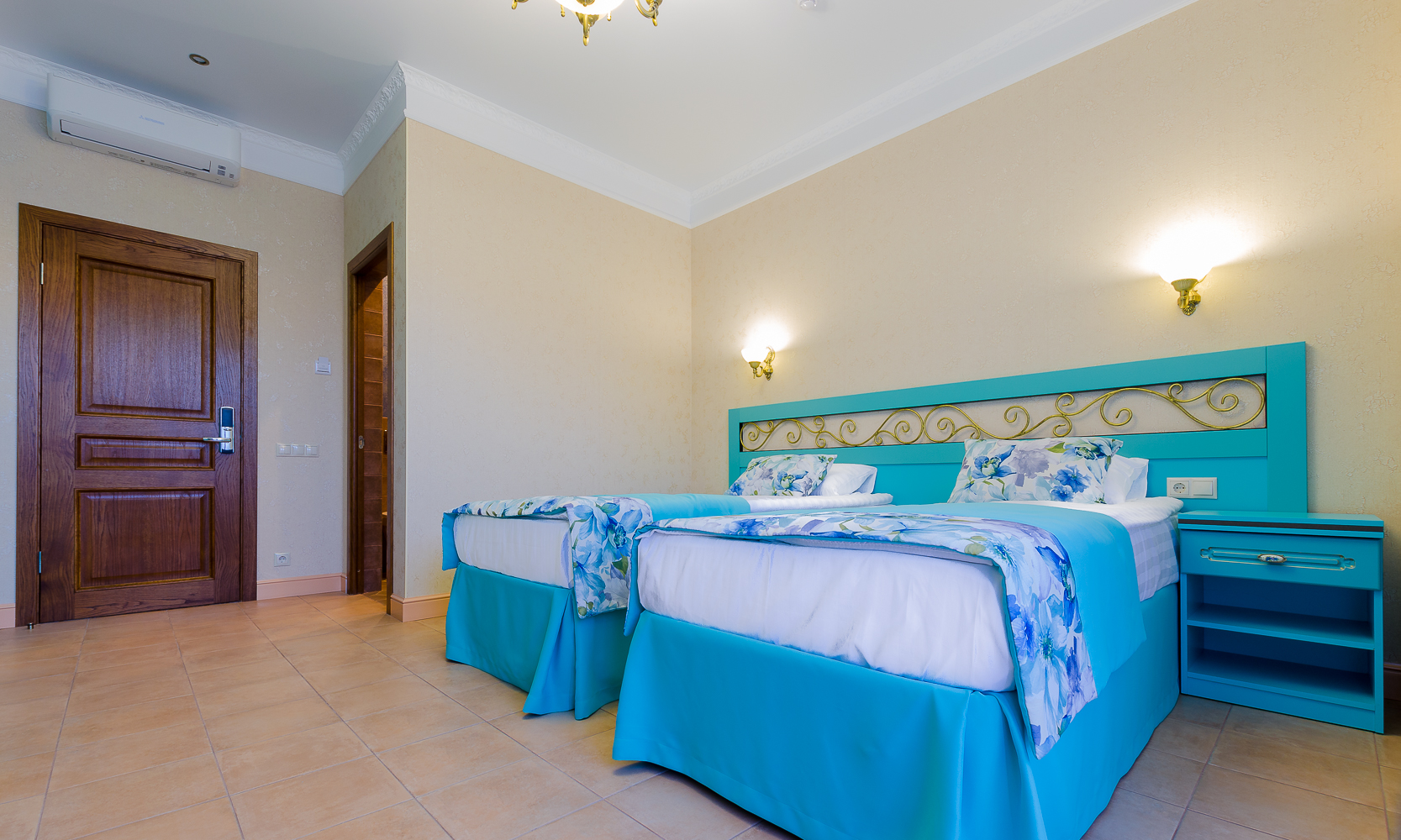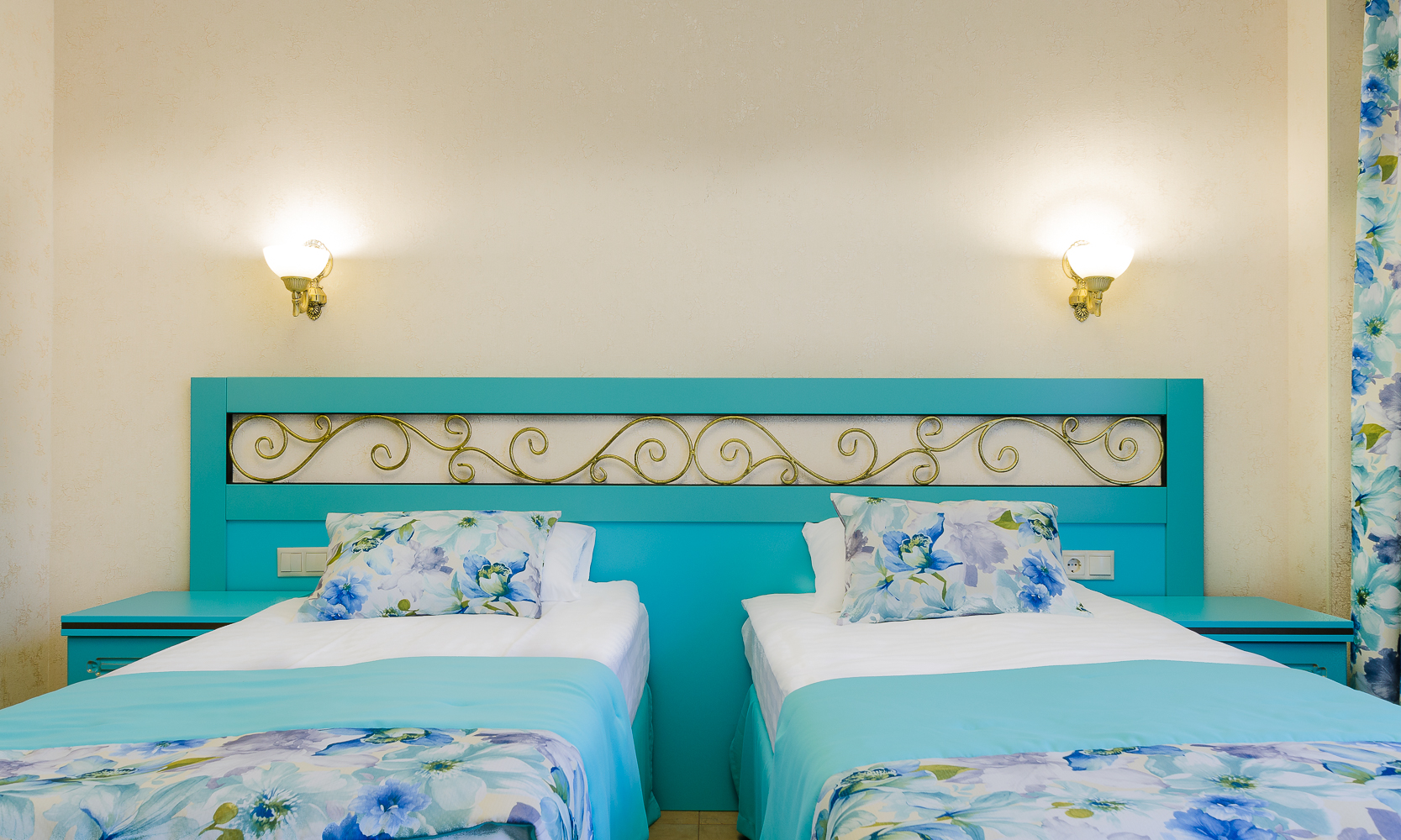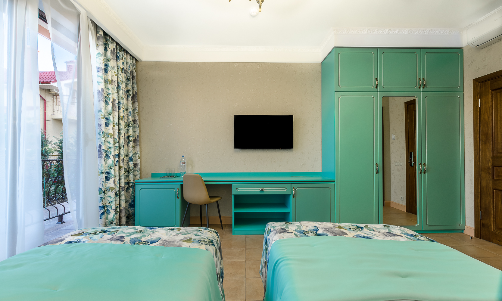 В номере: кровати односпальные, прикроватные тумбочки, шкаф, кондиционер, телевизор, холодильник