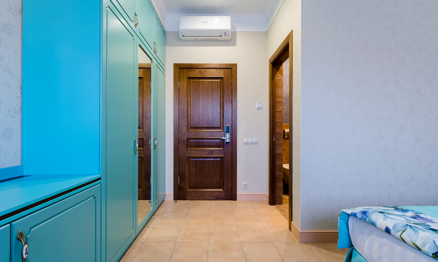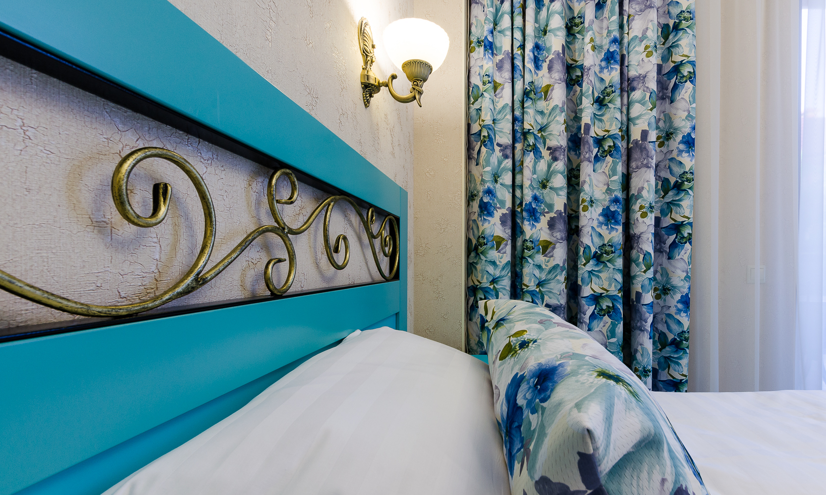 В номере: кровать двуспальная, прикроватные тумбочки, шкаф, кондиционер, телевизор, холодильник
