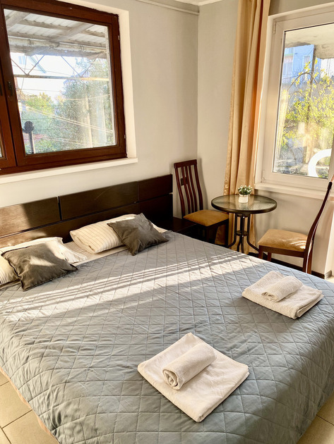 Wi-Fi доступен бесплатно и в комнатах, и на территории.Здесь нет шумных мероприятий или ресторана, зато есть всё для спокойного отдыха: тишина, близость к морю и возможность жить в своем ритме. Подойдет тем, кто ищет бюджетный вариант с базовым комфортом и хочет проводить дни на пляже, а вечера — в уютном номере.