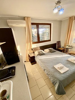 Гостевой дом «Студио Отельчик Вардане» расположен в тихом поселке Вардане, всего в 7 минутах ходьбы от моря. До малолюдного пляжа Шексна — 400 метров, где можно отдыхать на смешанном галечно-песчаном берегу без толп туристов. Номера-студии оформлены просто и аккуратно, в каждом есть своя кухня: это удобно для тех, кто любит готовить самостоятельно.