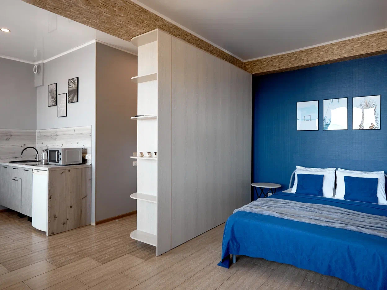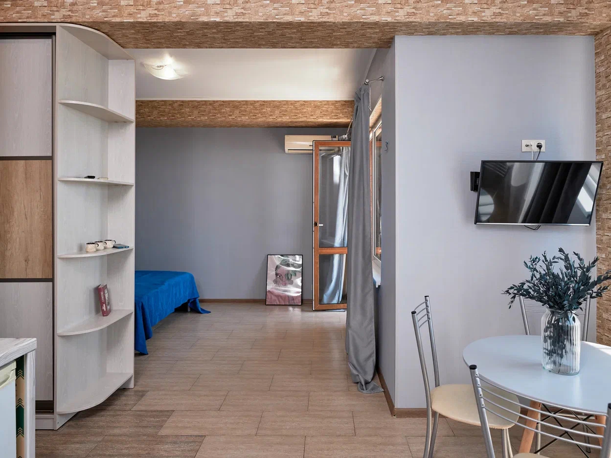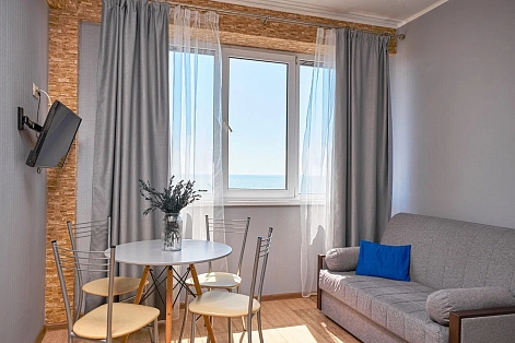 Выход на Олимпийскую набережную в 800 метрах от Студии.Апартаменты оборудованы удобными спальными местами и кухней, есть стиральная машина и сушилка для белья, утюг и гладильная доска, санузел душем и феном. Та же среди услуг - высокоскоростной Wi-Fi. Из окон открывается прекрасный вид на море.Есть три варианта выхода к морю: 1-й ближайший 500 метров по прямой – пляж Сочифорния, 2-й через пешеходный мост реки Мзымта – пляж Мандарин, 3-й – 1,5 километра. через морской порт – Олимпийский пляж и набережная протяженностью более 5 километров с различными оборудованными пляжами.