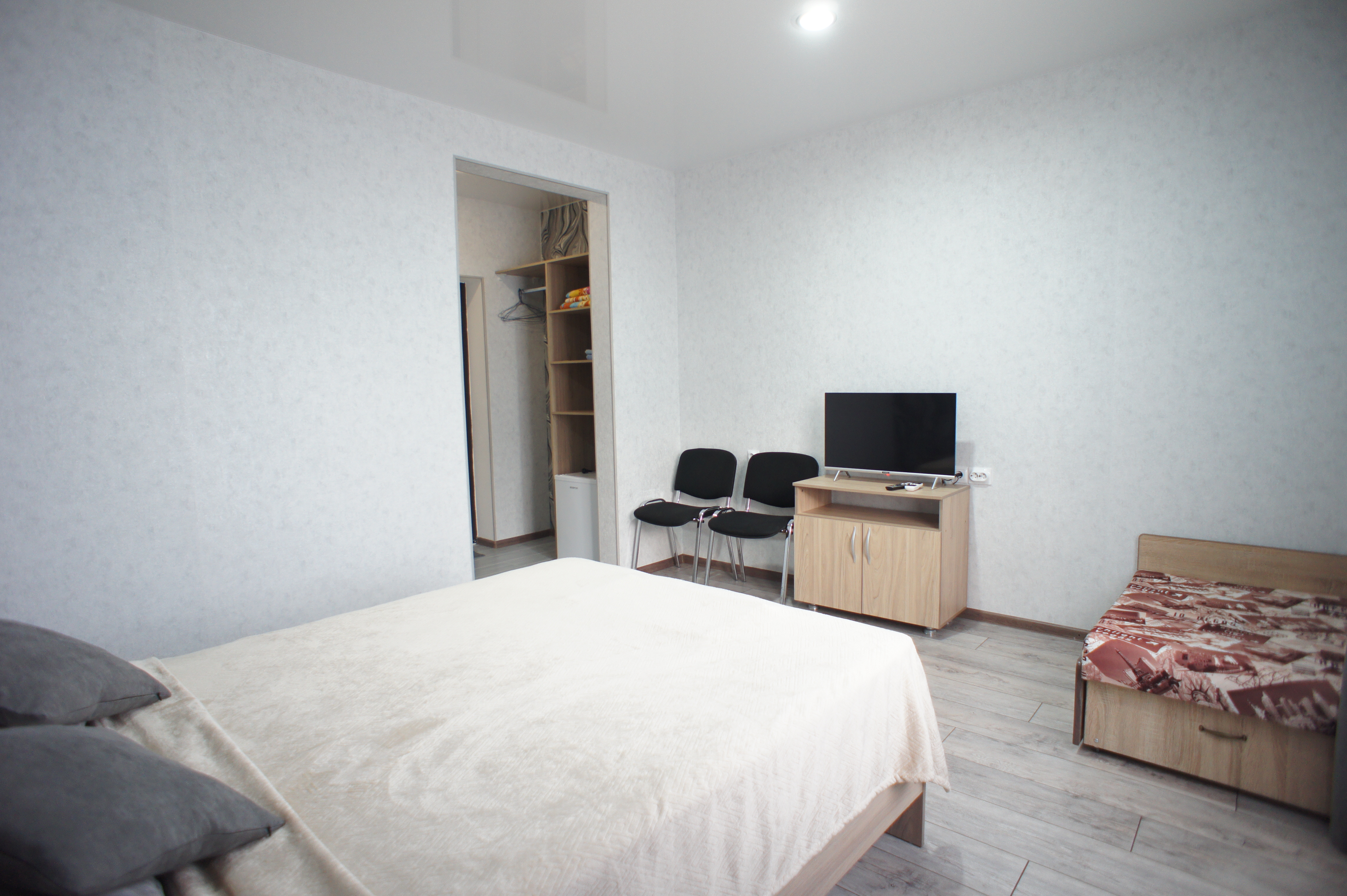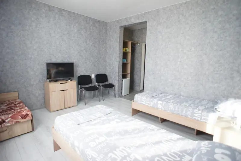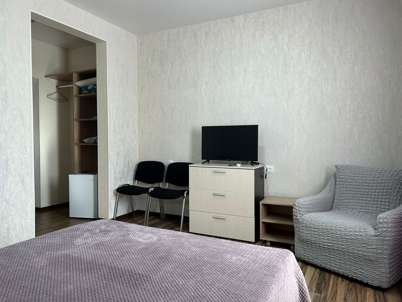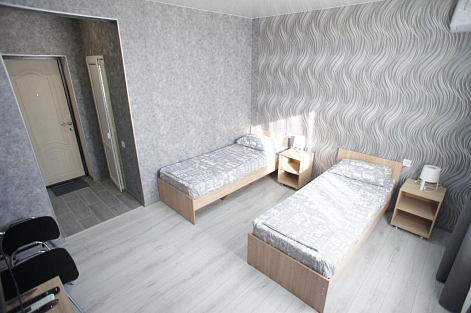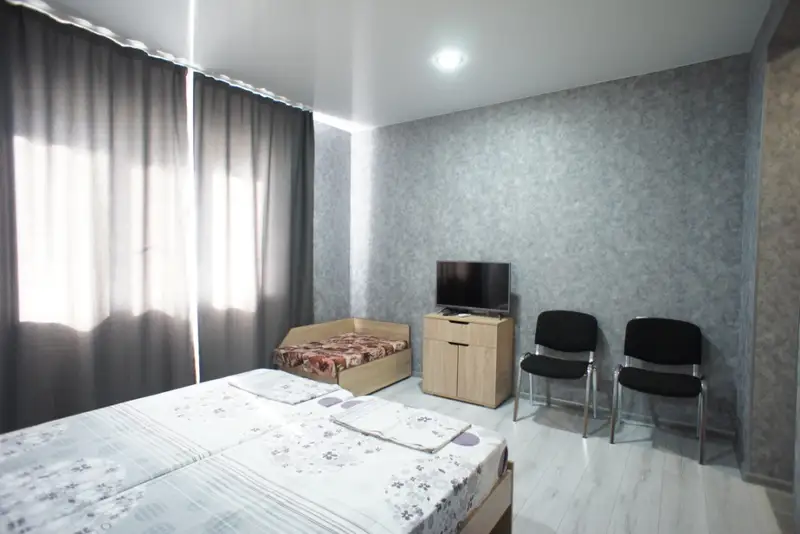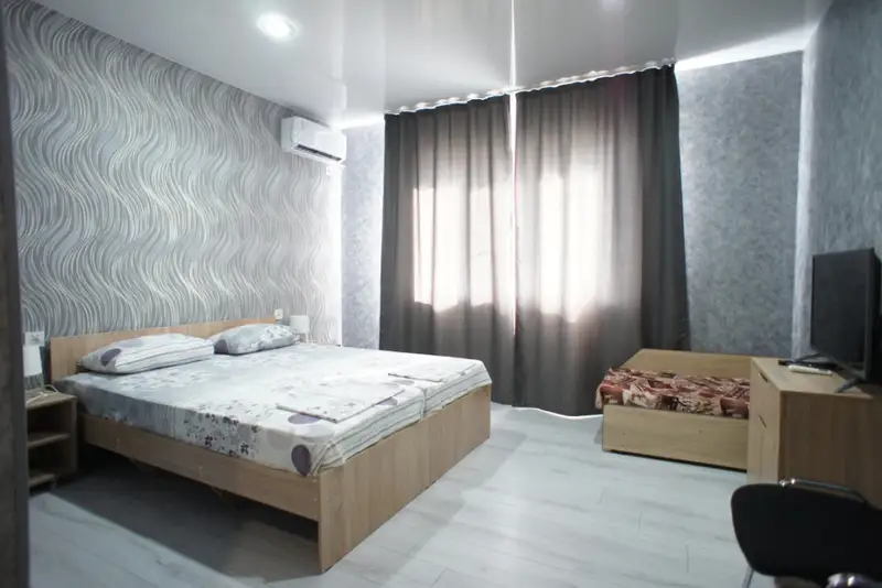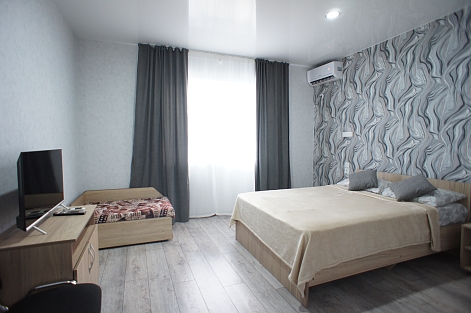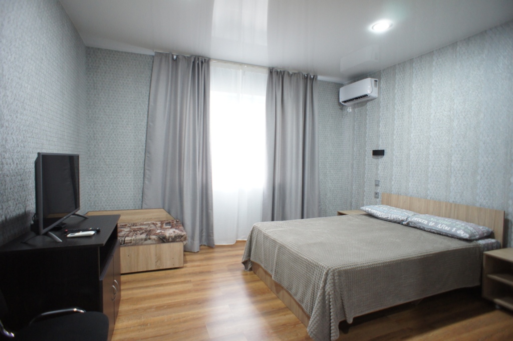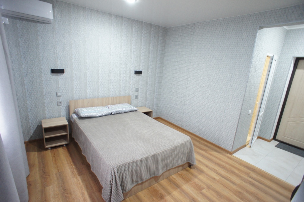 Номера расположены в трехэтажном коттедже на 2 и 3 этажах. В номерах есть вне необходимое для комфортного проживания. В каждом номере удобная мебель, ванная комната с бойлером и душем, телевизор ЖК со Smart TV, мини-холодильник, кондиционер. Для удобства гостей предусмотрены полотенца для бассейна.На территории гостевого дома оборудованы: полностью оборудованная кухня-беседка общего пользования, беседка с мангалом, парковка во дворе и рядом с домом, открытый бассейн, шезлонги, интернет Wi-Fi, детская площадка, батут для детей.До моря пешком около 20 минут неспешным шагом. Дорога к морю по ровной, тенистой улица Амурская. Пляжная полоса широкая и малолюдная, галька средне-мелкая, вход в море пологий.