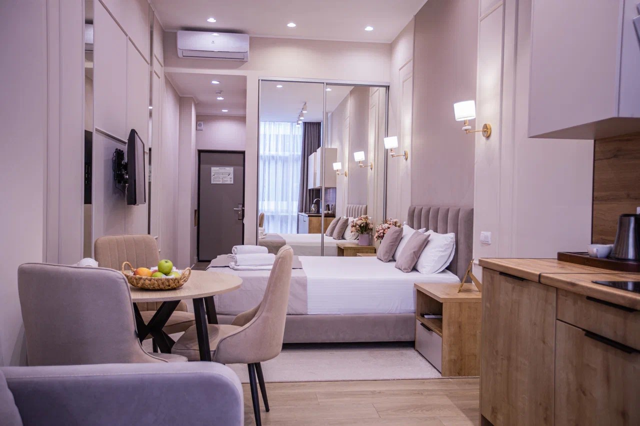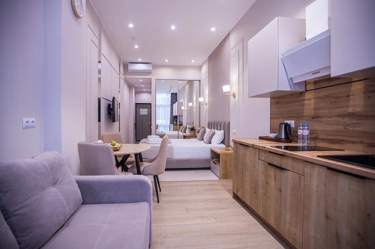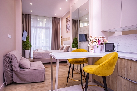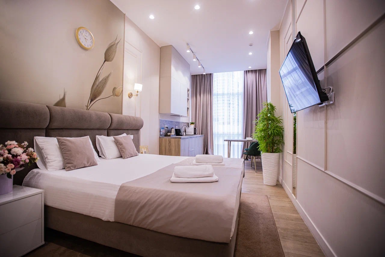 Апарт-отель SunLine LUXury 4* – это уникальный архитектурный проект в самом сердце Сочи. Апарт-отель расположен на главной прогулочной аллее города, в 10 минутах ходьбы от морского порта и центральной набережной. Самые популярные городские пляжи, рестораны, кафе, магазины и развлечения находятся в шаговой доступности, а развитая инфраструктура центрального района позволяет провести время ярко и со вкусом.Все номера в апарт-отеле с мини-кухней, современной мебелью, собственными санузлами с душевыми кабинами, феном, халатом и тапочками.