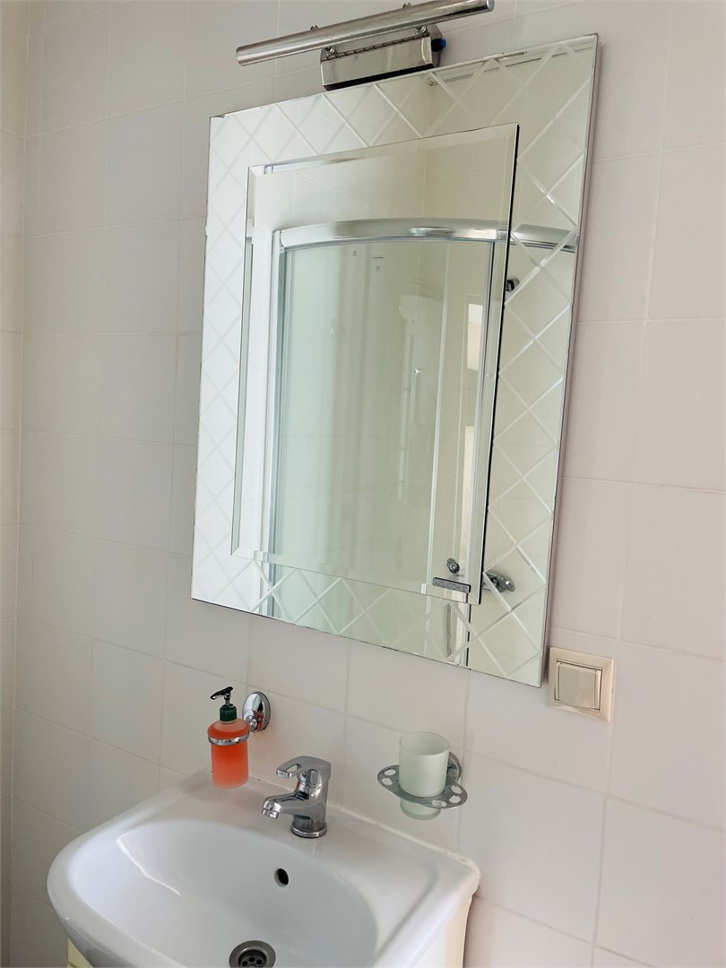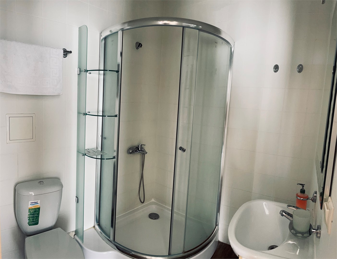 Санузел: с душем (поддон), тапочки, туалетные принадлежности, фен