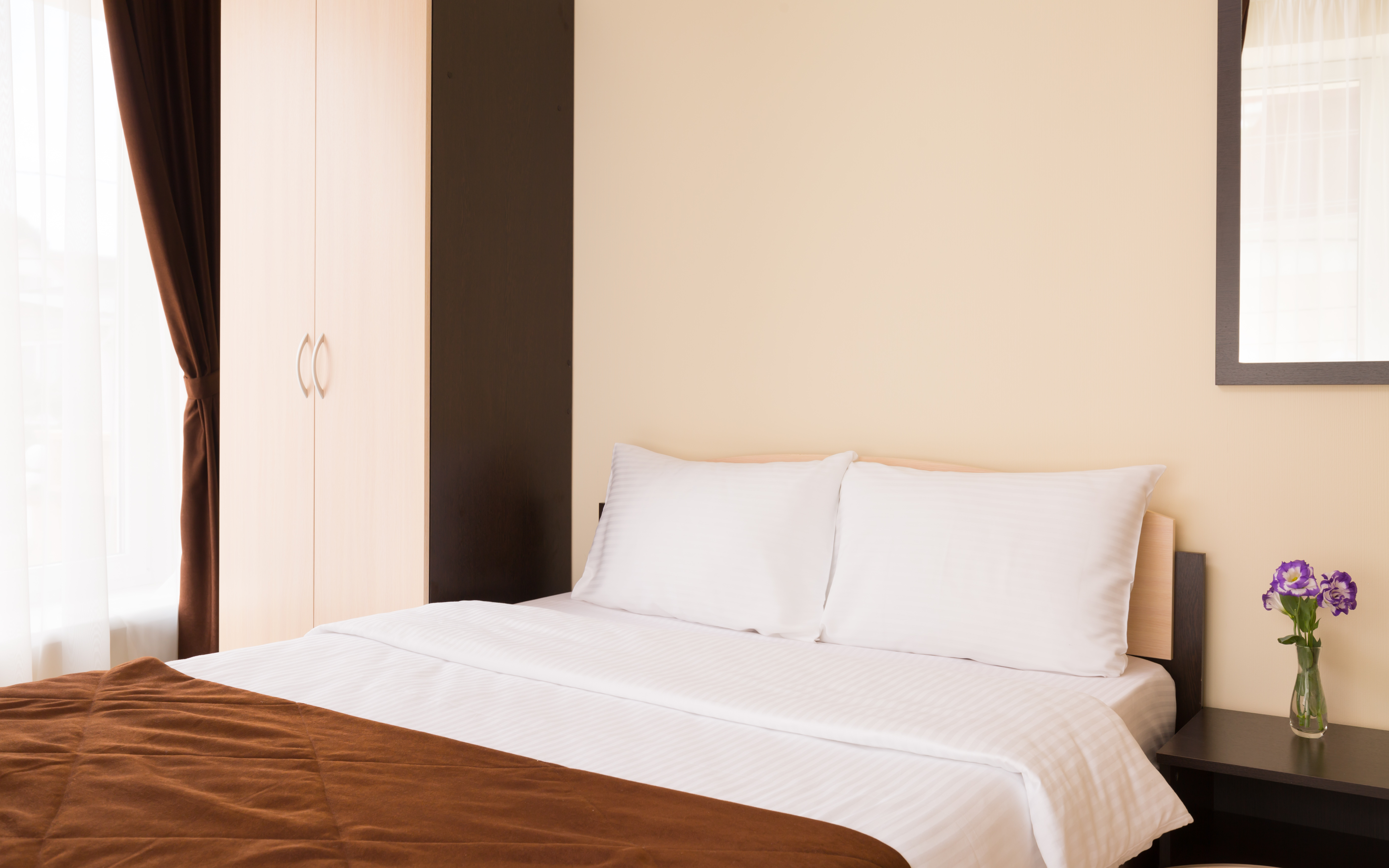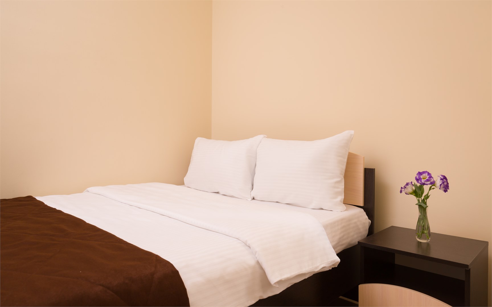 В номере: вешалка, зеркало, кровать двуспальная, прикроватная тумбочка, стол, шкаф, кондиционер, мини-холодильник, телевизор ЖК, чайный набор посуды, электрочайник