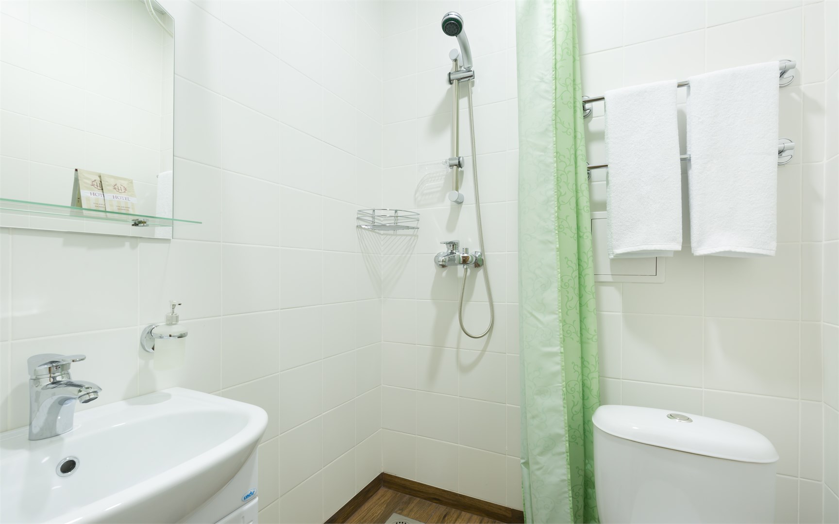 Санузел: с душем, тапочки, туалетные принадлежности, фен