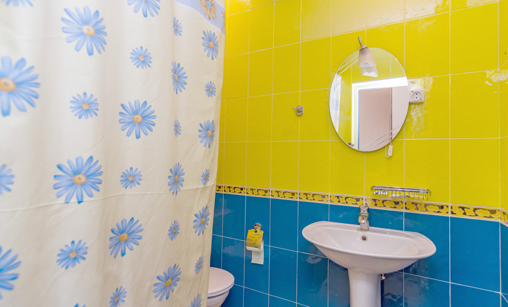 Санузел: с душевой кабиной, тапочки, фен