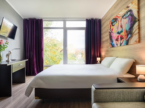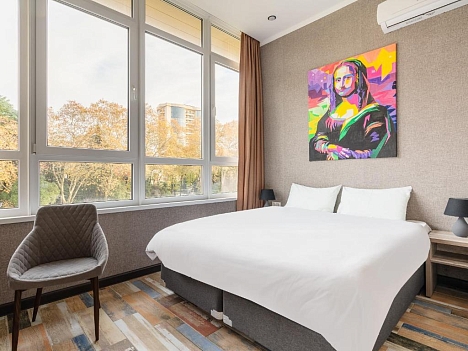 Трехзвездочный АРТ апарт отель расположен в центре города рядом с красивой и современной набережной реки Сочи. В шаговой доступности —кафе, бары, магазины, автобусные остановки. В 5 минутах ходьбы сочинский океанариум и парк развлечений Ривера.