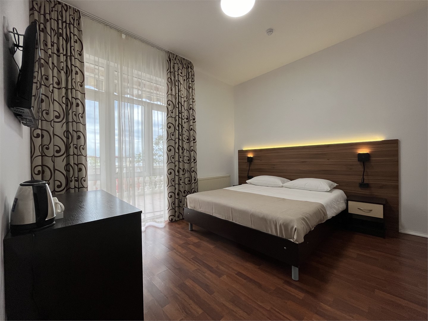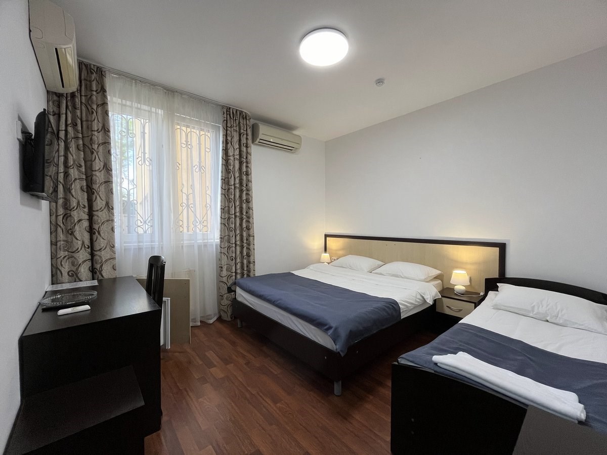 Добраться до пляжа можно за 15 минут пешком.В гостевом доме просторные и светлые номера оформлены в современном стиле. Каждый номер оснащен кондиционером, телевизором, бесплатным интернетом Wi-Fi. Новые удобные матрацы, подушки, постельное бельё премиум сегмента и нежнейшие полотенца, современные санузлы с душем. В холле есть кулер с водой. Все номера прошли обновление в 2024 году. Для автовладельцев предусмотрена парковка. На первом этаже гостевого дома оборудована летняя терраса с обеденной зоной. Ближайший городской галечный пляж оборудован шезлонгами, навесами, зонтами от солнца, раздевалками и водными развлечениями на любой вкус.