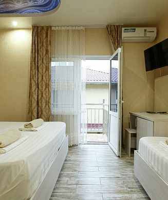 В номере: вешалка, зеркало, кресло-кровать, кровати односпальные /одна двуспальная кровать, прикроватная тумбочка, прикроватные тумбочки, столик кофейный, стулья, шкаф, мини-холодильник, сейф, сплит-система, телевизор, электрочайник