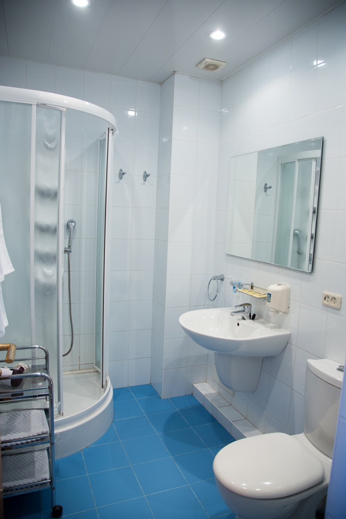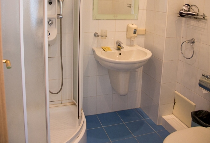 Санузел: с душем, туалетные принадлежности, фен