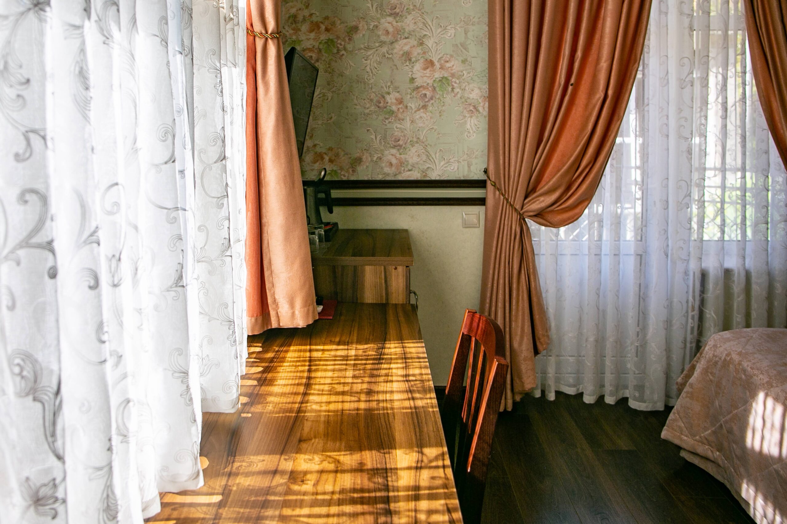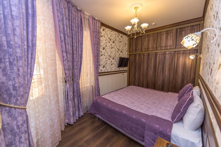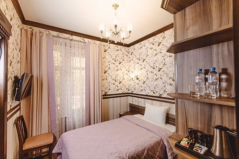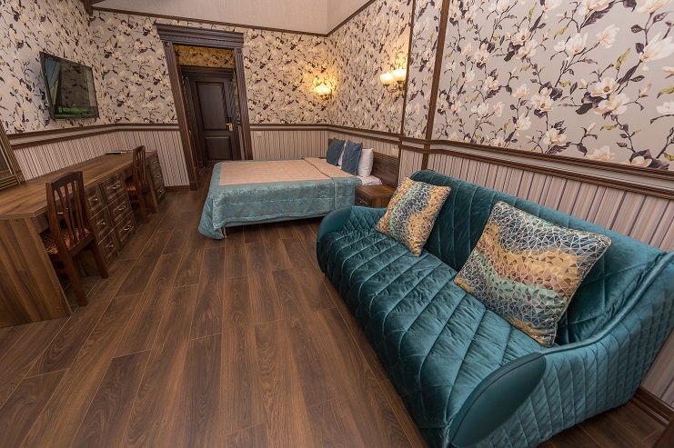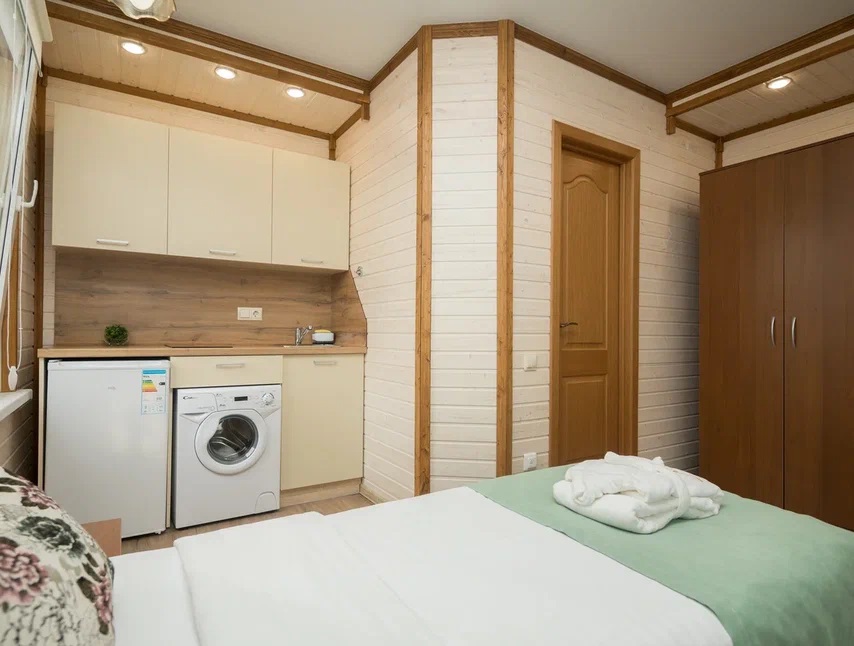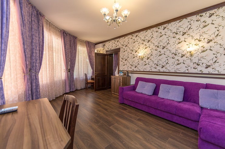 В номере: диван, комод, шкаф, кондиционер, мини-холодильник, плита электрическая, телевизор, утюг, чайник, чайный набор посуды