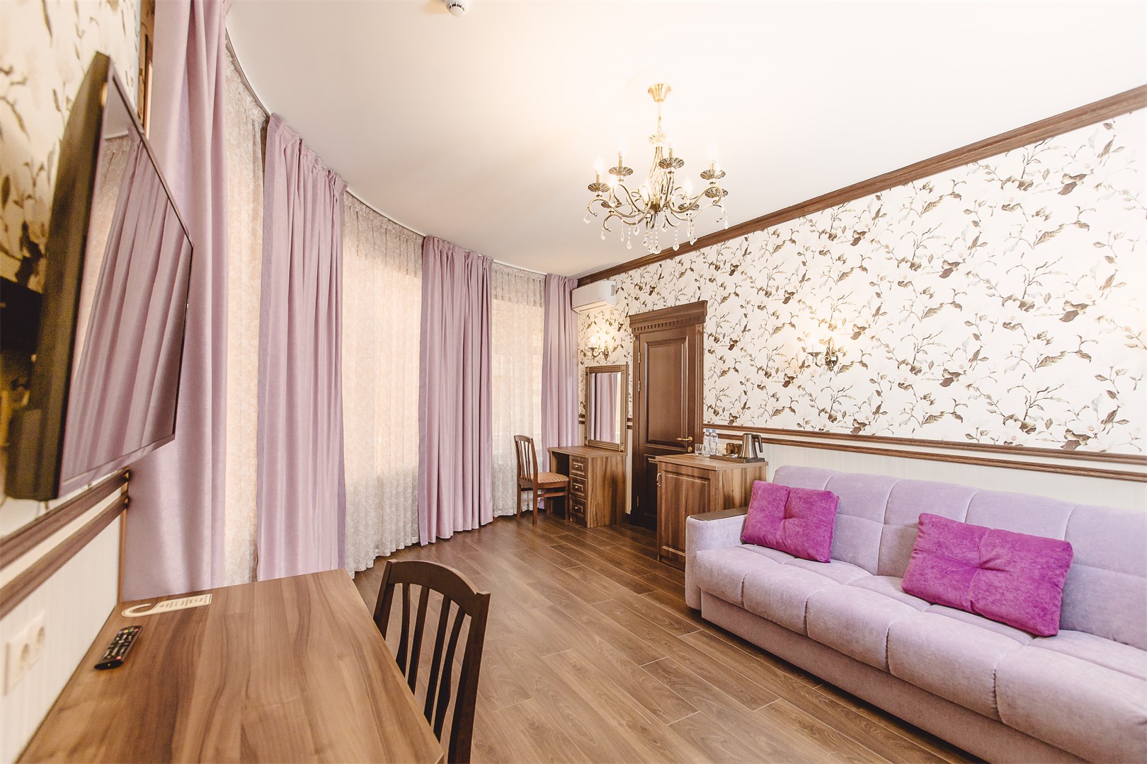 Отделка, дизайн и неповторимый интерьер позволят гостям окунуться в мир комфорта и уюта.Всего на выбор гостям комплекса предоставлены 26 номеров категорий «апартаменты», «люкс», «полулюкс», «комфорт» и «стандарт». Все номера проработаны до деталей, в каждом из которых сохраняется идея сочетания изящества и уюта. Выходя за ворота виллы, гости сразу попадают на «Тропу здоровья» – легендарный сочинский терренкур, длинной 6,5 километров, где любой желающий сможет совершить утреннюю пробежку, попрактиковать лечебную скандинавскую ходьбу или просто прогуляться по лесному массиву и подышать свежим морским воздухом.