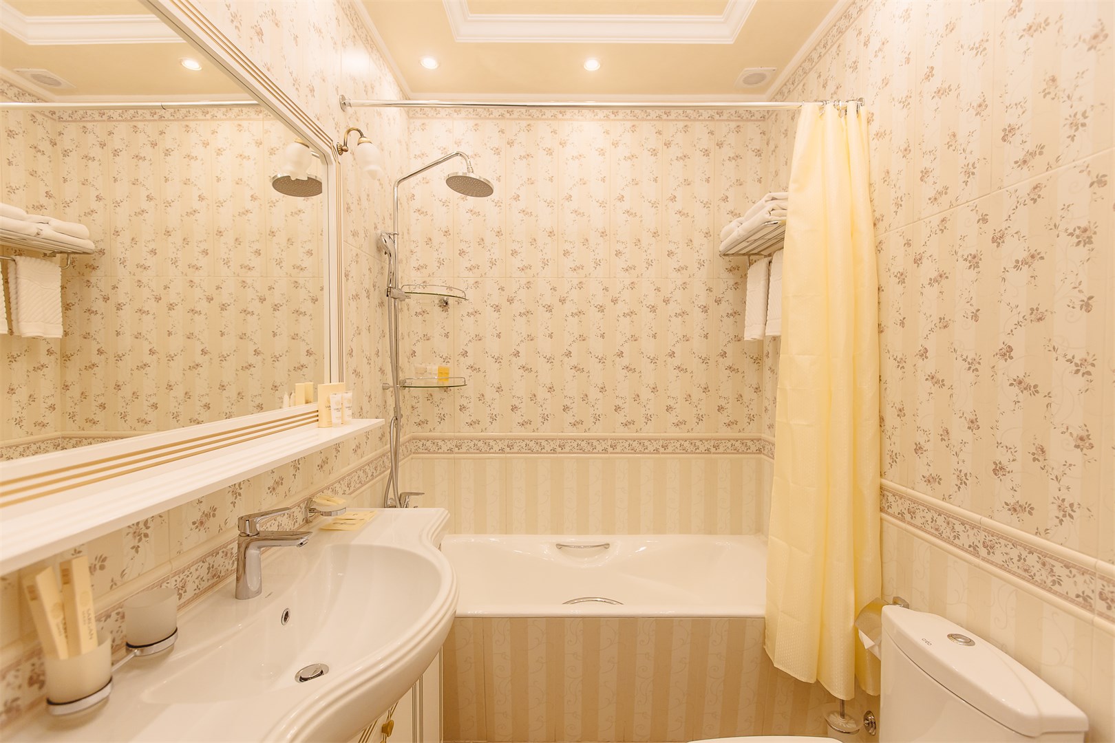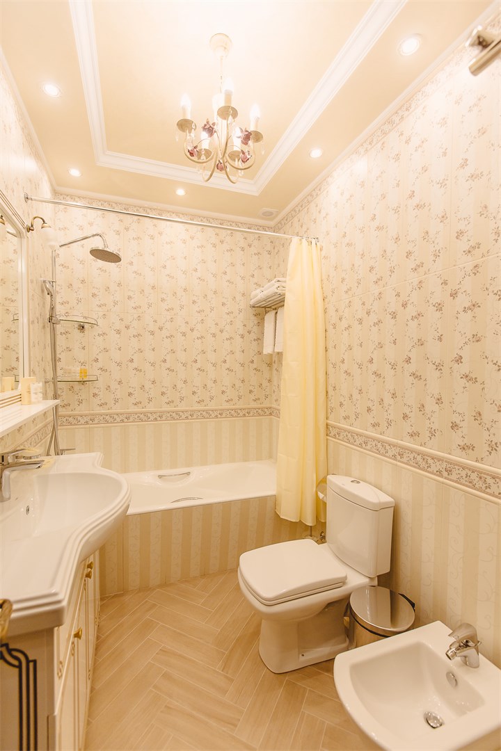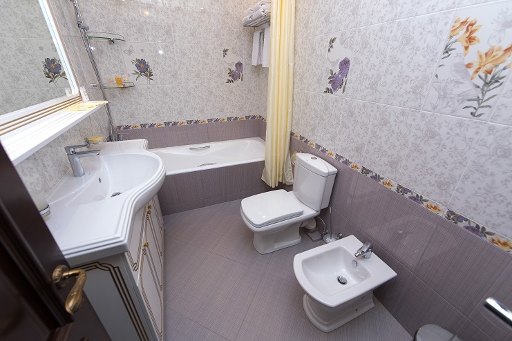 Санузел: биде, с ванной, тапочки, туалетные принадлежности, фен