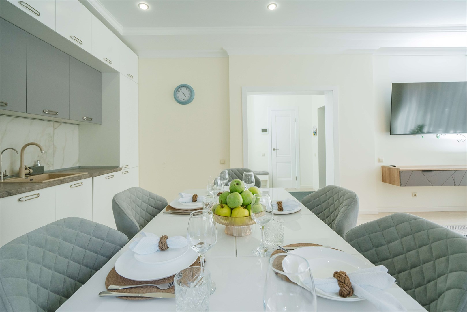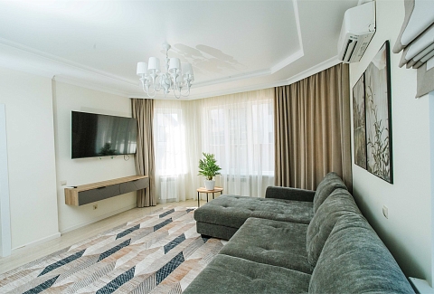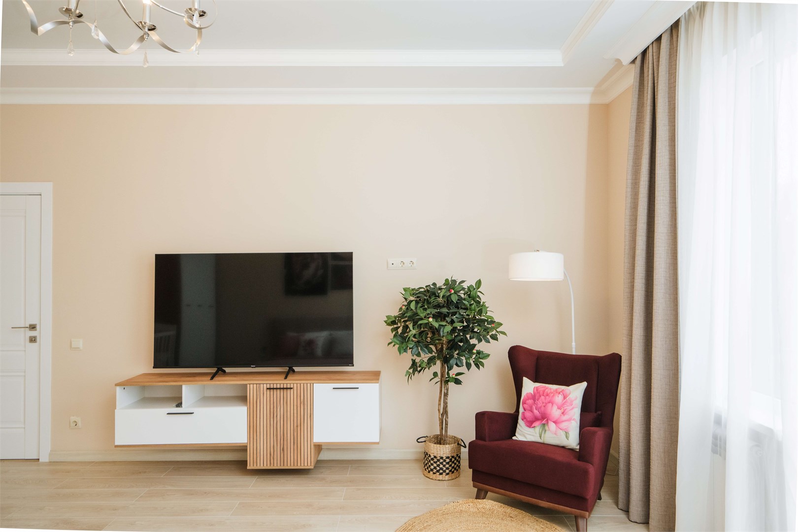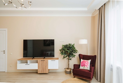 В номере: вешалка, диван, диван раскладной, зеркало, кресла, кровати односпальные, кровать двуспальная, набор мягкой мебели, набор плетеной мебели, прикроватные тумбочки, стол, столик журнальный, столик туалетный, стол обеденный, стулья, тумба, шкаф, шкаф встроенный, гладильная доска, кондиционер, кофемашина, микроволновая печь, набор посуды, стиральная машина, телевизор, утюг, холодильник, электрочайник