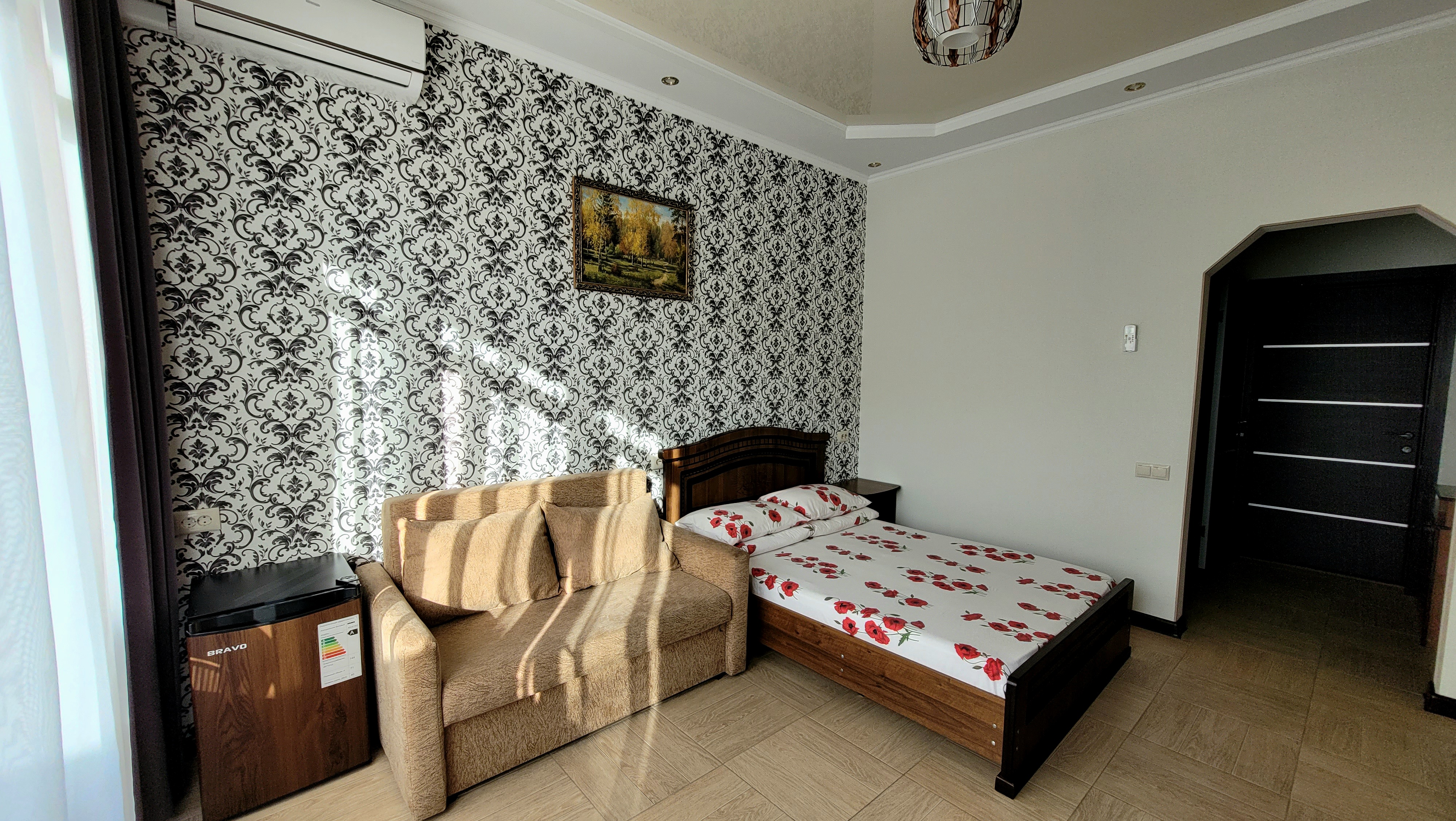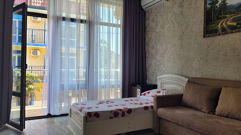 В распоряжении гостей комфортабельные номера с индивидуальными санузлами. В каждом номере есть кондиционер и балкон, оборудованный мебелью и сушилкой, а также техника: телевизор, фен, мини-холодильник, утюг.Для удобства гостей организована общая кухня, во внутреннем дворике есть зона для барбекю с мангалом. В распоряжении отдыхающих открытый бассейн, работающий сезонно. Среди услуг — сеть wi-fi и охраняемая парковка для гостей с машинами.В паре минут ходьбы расположен мелко-галечный пляж. На побережье установлены надувные горки, есть навесы и зонтики от солнца, лежаки, раздевалки, работают душевые.