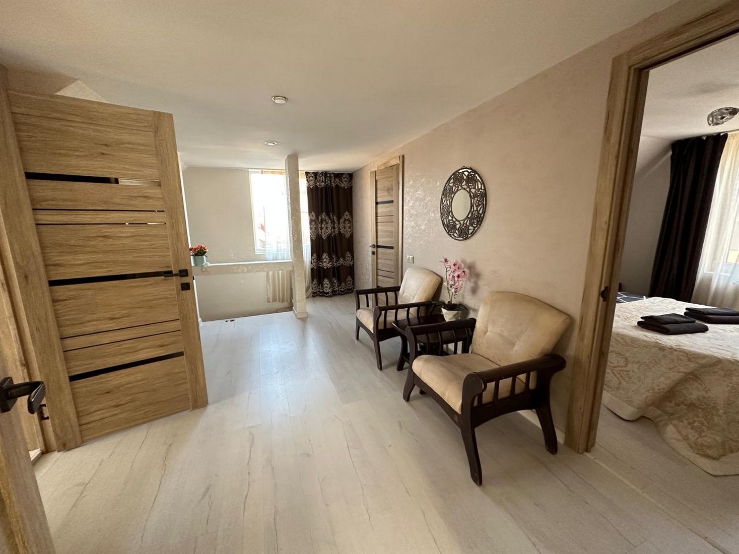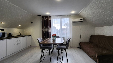 Для больших компаний предусмотрены просторные двухкомнатные апартаменты с отдельной кухней. В каждом номере есть кровати, телевизор, кондиционер, отопление, шкаф, вешалка, фен, посуда, столовые приборы, чайник, холодильник и стулья. В ванной комнате предусмотрен душ, раковина и туалет. Предоставляется постельное белье, полотенца, тапочки и необходимые гигиенические принадлежности.На территории бутик-отеля имеется общая кухня для самостоятельной организации питания. Также ежедневно подаются вкусные завтраки. Гостям предлагаются круглосуточная камера хранения багажа, Wi-Fi, подогреваемый бассейн, уютная беседка и профессиональный мангал для приготовления пищи на открытом воздухе. Для автомобилистов имеется охраняемая парковка на 4 автомобиля. Отель находится на второй линии от моря. Галечный пляж оснащен всем необходимым для комфортного отдыха у моря.