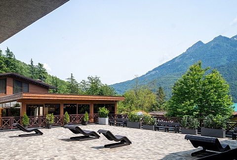 Поездом до ж/д вокзала Адлер, далее на электропоезде «Ласточка» до станции «Эсто-Садок», далее пересадка на автобус №163 до остановки «По требованию», далее пройти 400 м до апартаментов.