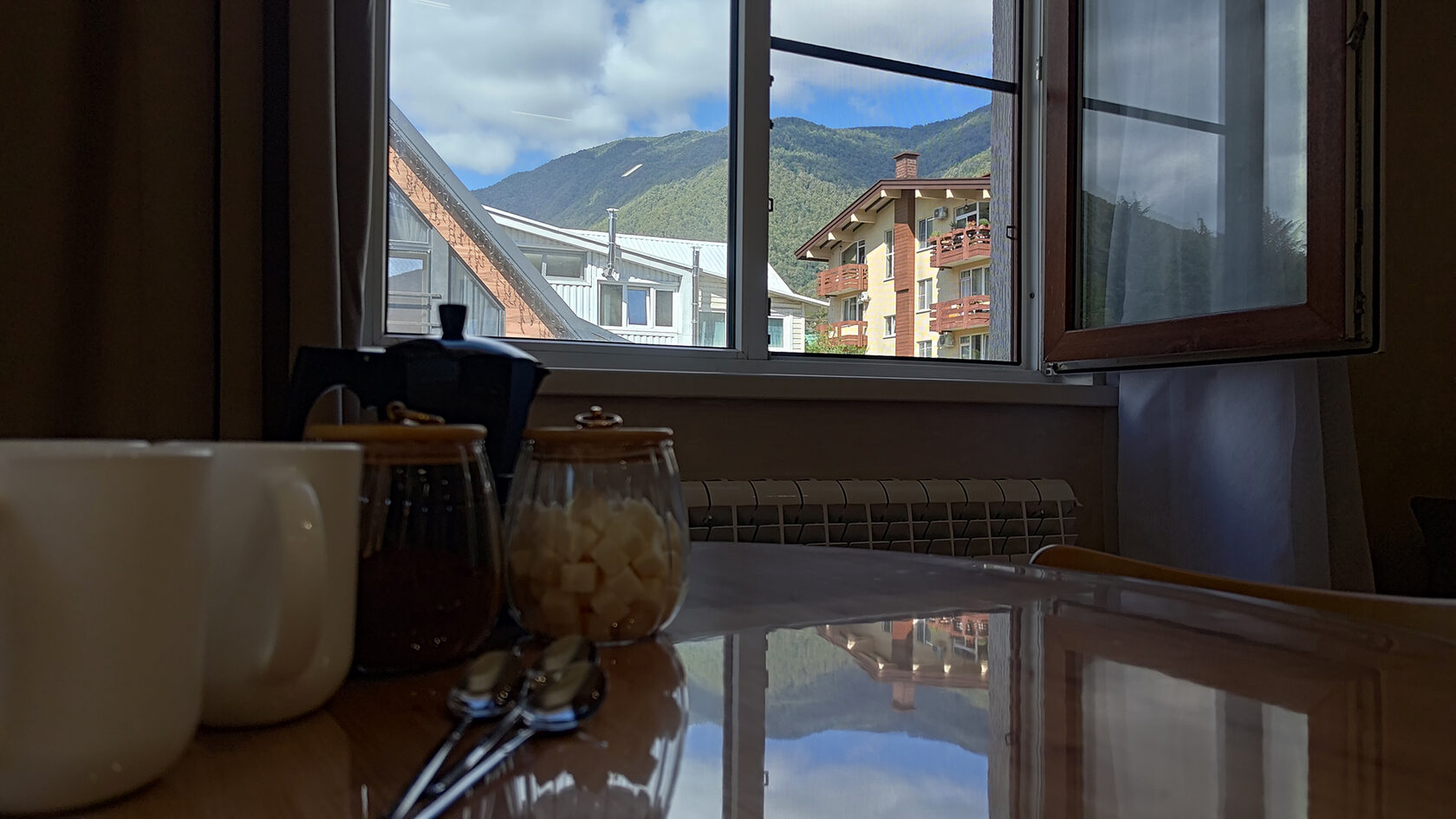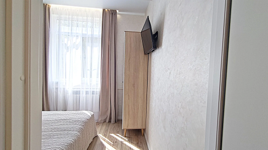 Апартаменты «Жить в Горах на Трудовой Славы 9» предлагают уютное размещение в самом сердце Красной Поляны, прекрасно подходя для любителей активного отдыха и комфорта. Удобное местоположение позволяет легко добраться до ближайших кафе, ресторанов и магазинов, а до канатной дороги, ведущей на горнолыжные склоны, всего около 10 минут на автомобиле.Современные апартаменты в скандинавском стиле располагаются на втором этаже трёхэтажного дома. В спальне стоит удобная двуспальная кровать и телевизор.