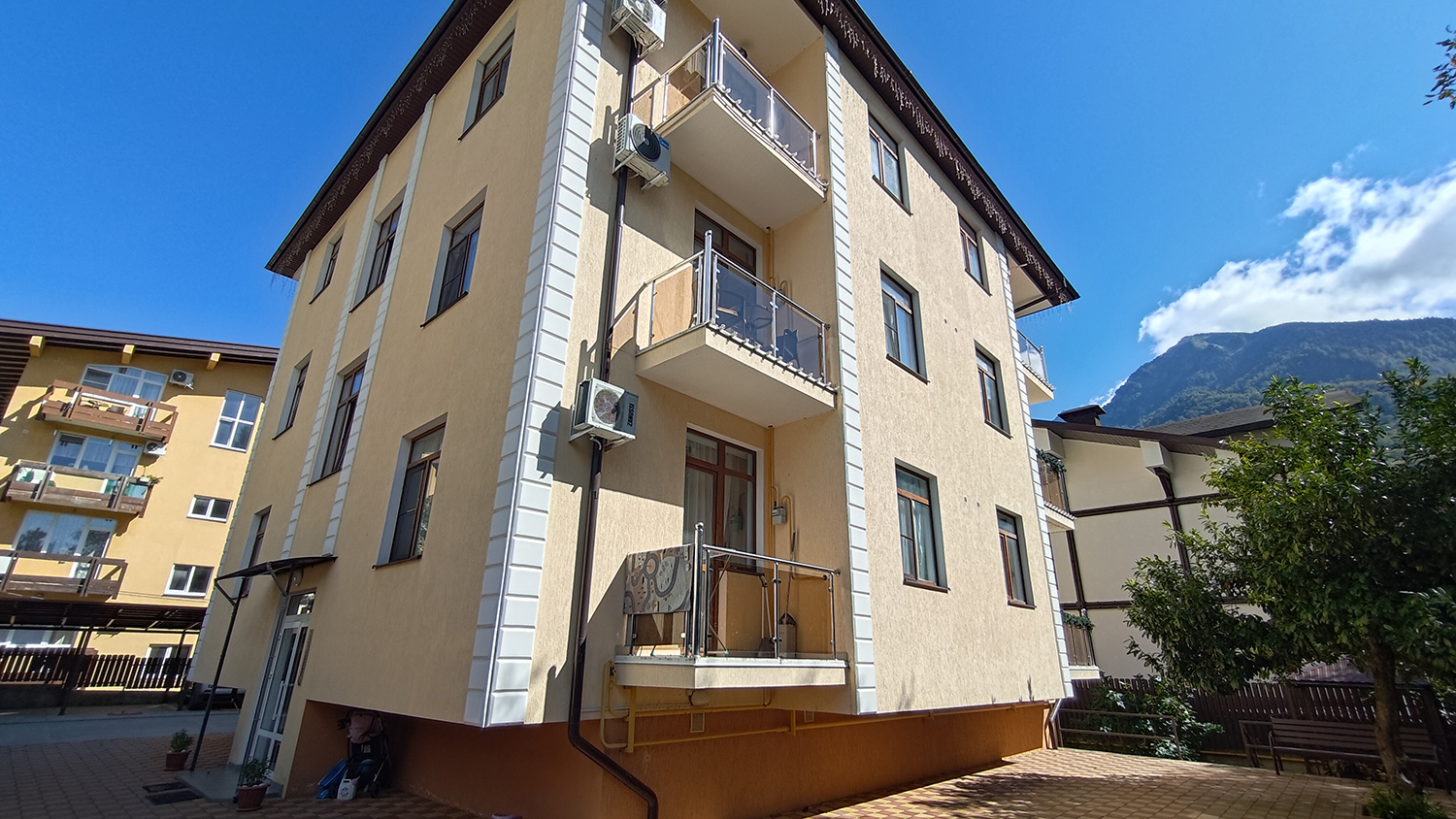 Поездом до ж/д вокзала Адлер, далее на автобусе №105, 105с до остановки «Вертодром», далее пройти 380 м до апартаментов.