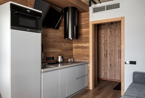 Апартаменты «Жить в Горах на Гаражной 6» предлагают уютное и удобное размещение в самом центре Эсто-Садка, на тихой улице. В шаговой доступности находятся рестораны, кафе, магазины, а также популярные достопримечательности курорта - Казино Сочи, Горки Молл, Ред Арена и канатная дорога на горнолыжные трассы.На территории есть закрытая парковка, а для хранения лыжного оборудования предусмотрена специальная кладовая. Для любителей активного отдыха рядом расположен терренкур и прогулочная зона, соединяющий три курорта и поселок Красную Поляну, с возможностями для пеших прогулок и катания на велосипеде или роликах.Апартаменты включают отдельную спальню с двуспальной кроватью и шкафом, комфортную гостиную с диваном, кондиционером и телевизором, а также функциональную кухню с обеденной зоной.