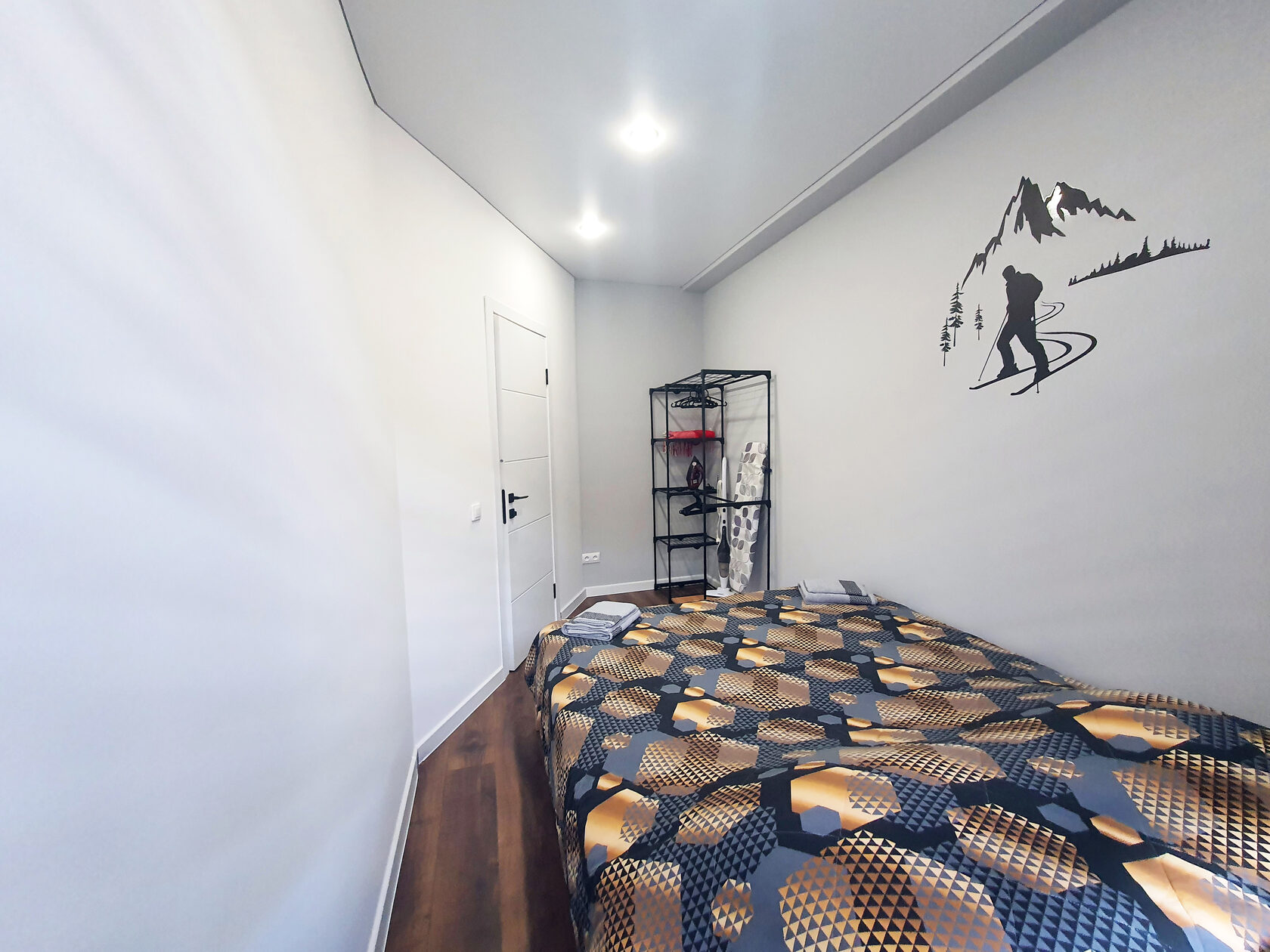 В номере: вешалка, гардеробная, диван раскладной, зеркало, кровать двуспальная, стол, стулья, шкаф, гладильная доска, кондиционер, лыжехранилище, микроволновая печь, набор посуды, плита газовая, стиральная машина, сушилка для белья, телевизор ЖК, утюг, холодильник, электрочайник