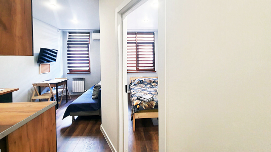 Апартаменты «Жить в Горах на Переселенческой 12» — отличный выбор для тех, кто хочет насладиться отдыхом в курортной зоне Эсто-Садка. Удобное расположение на второй линии гарантирует тишину и спокойствие, при этом всего за 5 минут можно дойти до ресторанов, кафе, супермаркетов и аптек. Вблизи находятся популярные места, такие как казино Сочи, Горки Молл и Red Arena, а также променад и канатная дорога, ведущая к Красной Поляне.В апартаментах предусмотрены все условия для комфортного проживания: спальня с двуспальной кроватью, уютная гостиная с диваном, кондиционером и телевизором, а также оборудованная мини-кухня с газовой плитой, микроволновой печью и всем необходимым набором посуды.
