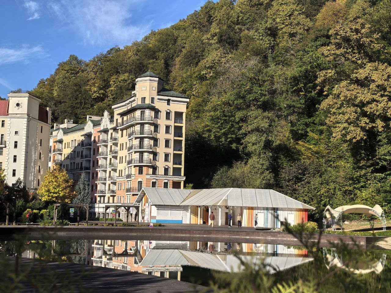 На этом туристическом маршруте предусмотрены специальные дорожки для разных видов активностей.Апартаменты находятся в четырехэтажном здании и предлагают просторное помещение, разделенное на несколько уютных зон. Спальная зона оборудована комфортной 2-спальной кроватью. В гостиной находится диван и кофейный столик, что создаст атмосферу для отдыха и встреч с друзьями и близкими. Кухонное пространство полноценно укомплектовано для самостоятельного приготовления пищи и включает в себя индукционную плиту, микроволновую печь, холодильник, электрочайник и посуду. Также к услугам стол и стулья для комфортных трапез.Чтобы пребывание было максимально комфортным, в апартаментах предусмотрены плоский телевизор с функцией Смарт ТВ, кондиционер и гладильные принадлежности.Ванная комната укомплектована ванной с возможностью принять душ, стиральной машиной, феном и туалетно-косметическими принадлежностями.Одним из приятных бонусов является открытый балкон, с которого открывается живописный вид на горы и Роза Холл, что особенно приятно для утреннего кофе или вечернего отдыха на свежем воздухе.