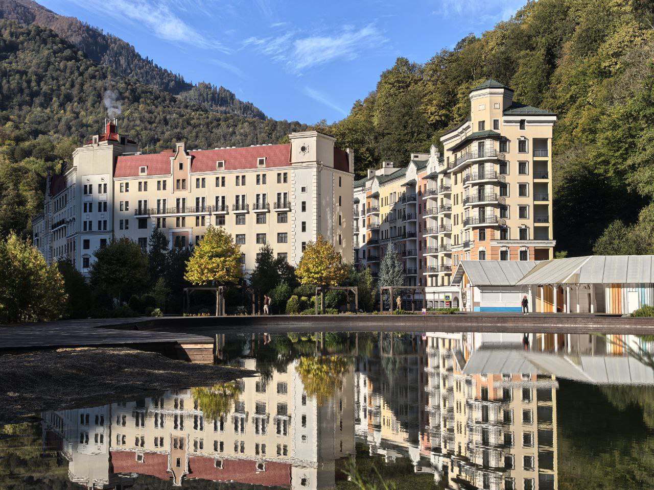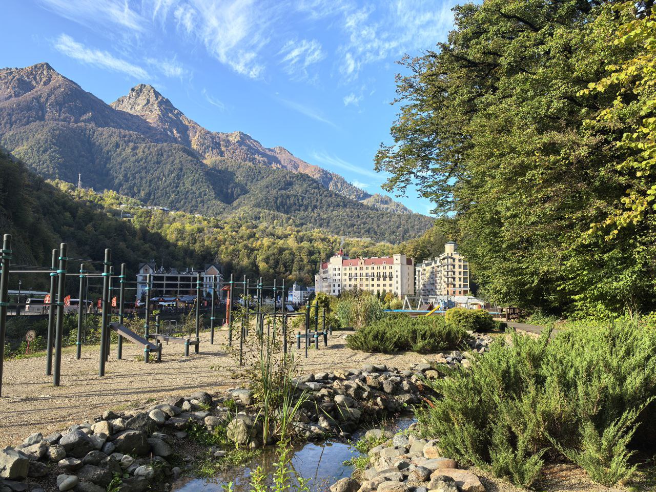 Апартаменты «Жить в Горах Роза Хутор» расположены в центре Роза Хутор на второй линии, что обеспечивает спокойствие и уединение, защищая от шумной городской суеты. Всего в двух минутах пешком находится вся необходимая инфраструктура: канатные дороги, Роза Холл, рестораны с разнообразной кухней, кофейни и магазины.Для тех, кто планирует поездку на автомобиле, рядом удобно расположена автостоянка. Кроме того, на терренкуре, который проходит рядом, можно насладиться пешими или велосипедными прогулками.
