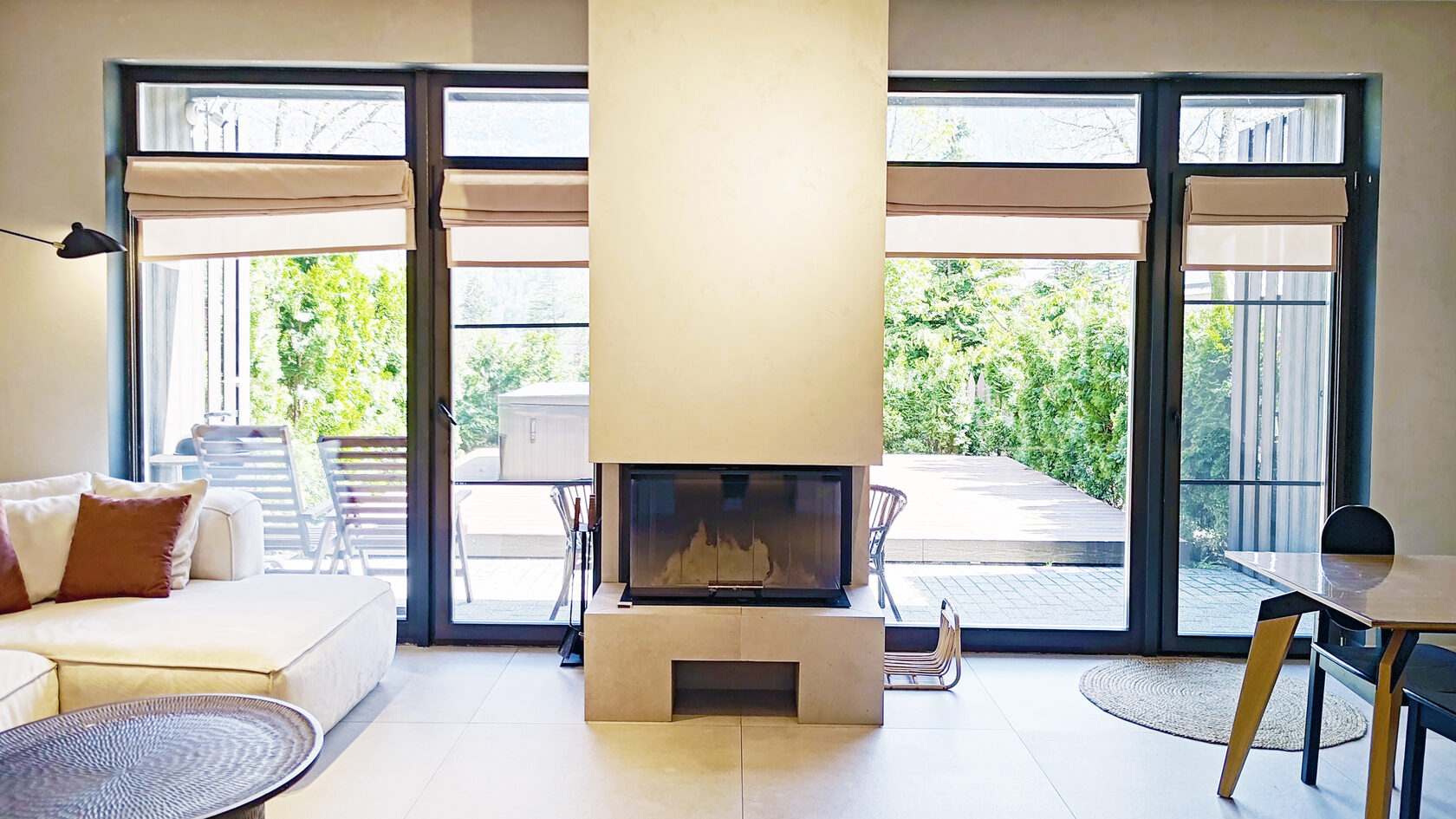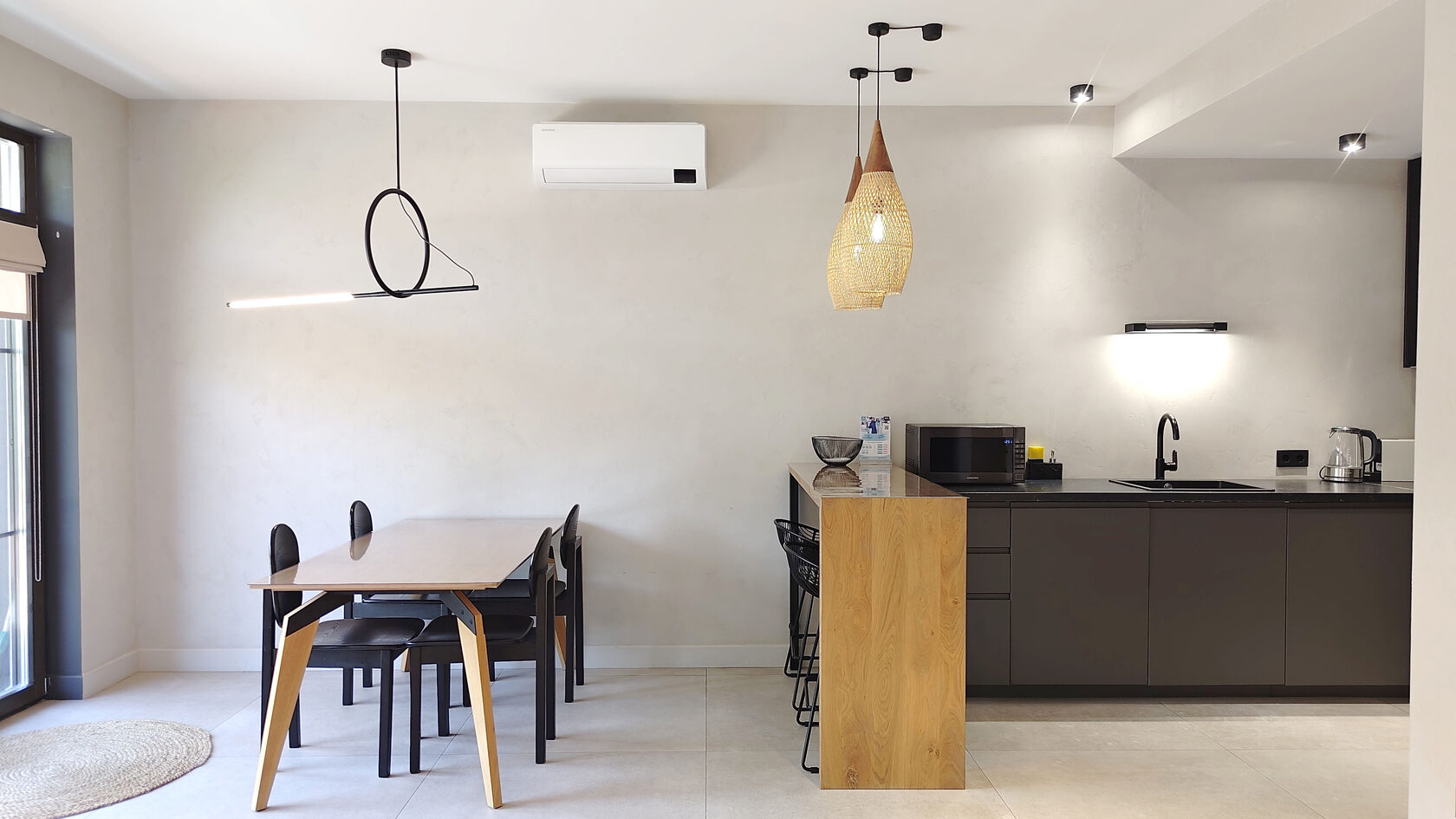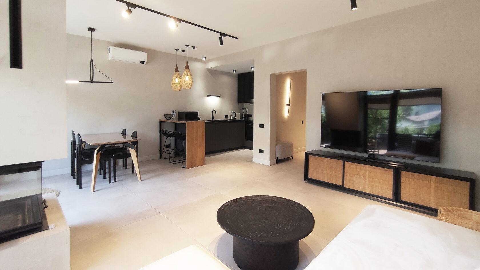 Уникальная архитектура в стиле минимализм в сочетании с хайтеком создает атмосферу современного и стильного жилья. Из окон открывается великолепный вид на горы и зелёные леса, что позволяет насладиться природной красотой.На первом этаже находится просторная гостиная с камином, кондиционером и телевизором, а также полностью оборудованная кухня с необходимой техникой: плитой, духовым шкафом, микроволновой печью, холодильником с морозильной камерой, кофемашиной и посудомоечной машиной. Также предусмотрены туалетная комната и кладовая, включающая прачечную.Второй этаж включает три комфортабельные спальни, каждая из которых оснащена кондиционером и имеет выход на балкон с летней мебелью. Здесь также располагаются два санузла, в каждом из которых есть ванна и душевая кабина. Спальные места представлены 2-спальными и раздельными кроватями.На закрытой территории таунхауса имеется парковка, а для удобства жильцов предоставляется Wi-Fi. На террасе создана зона для барбекю, что дополнительно способствует приятным вечерам на свежем воздухе. Этот таунхаус станет отличным выбором для семейного отдыха или поездки с друзьями.