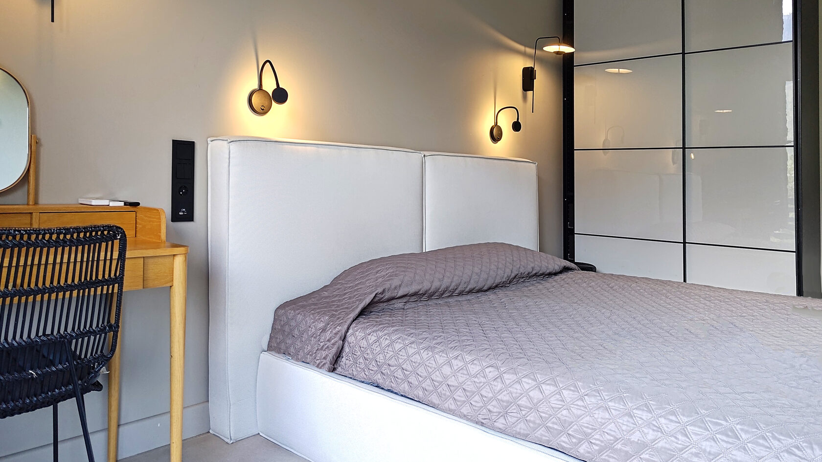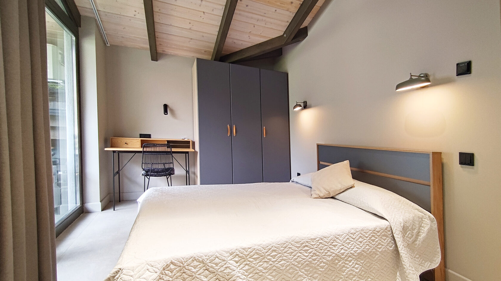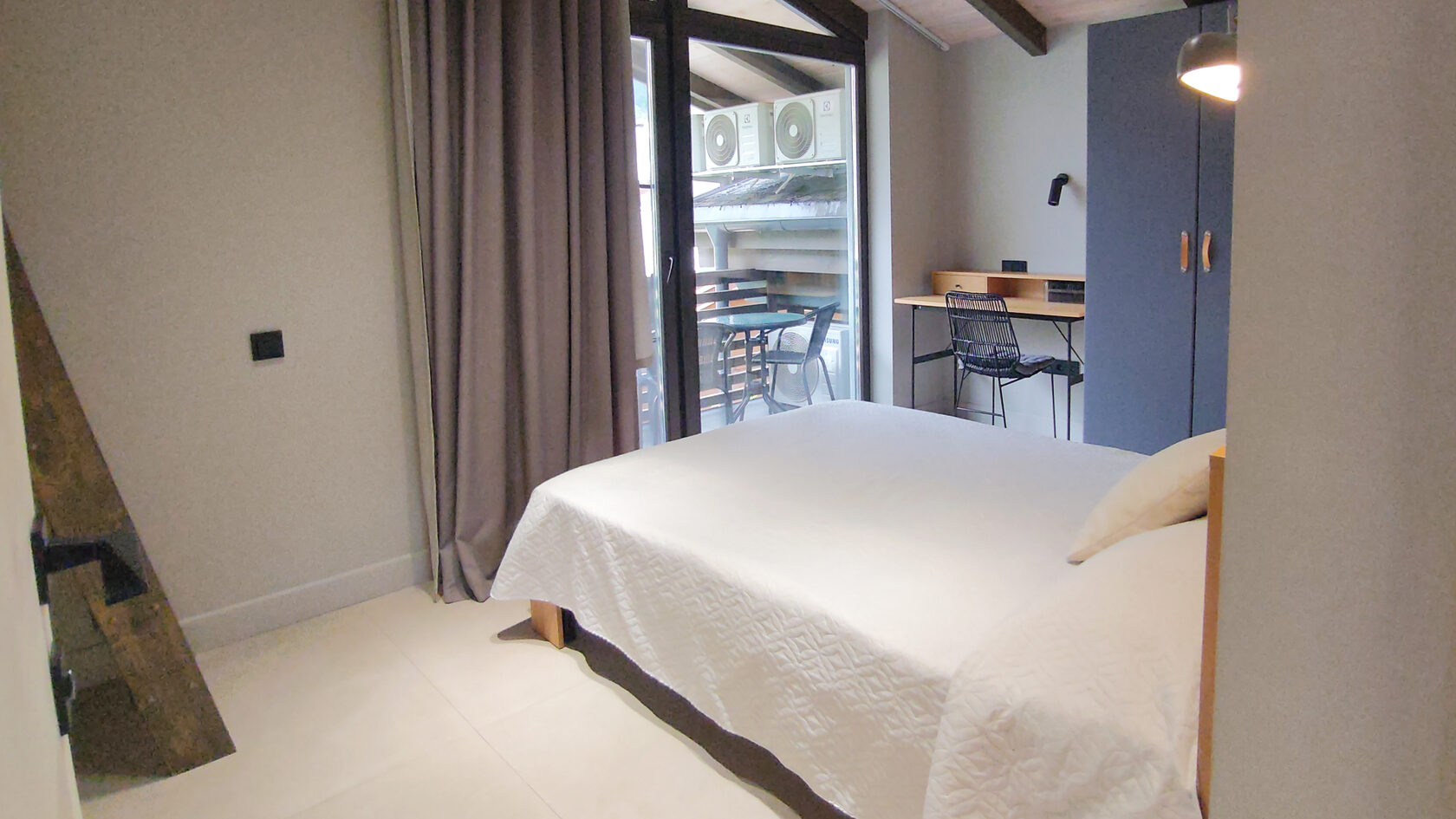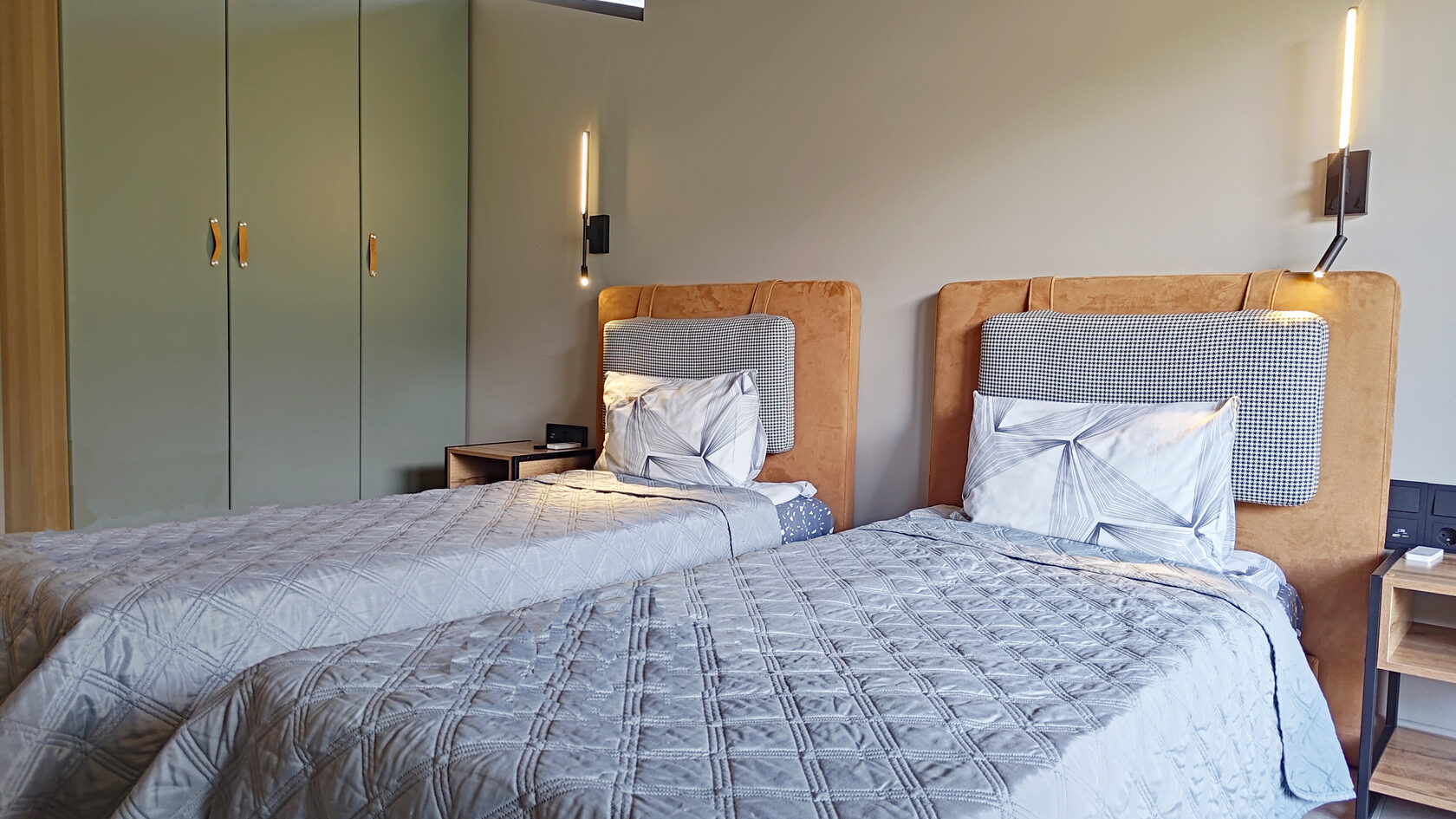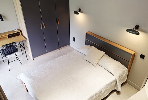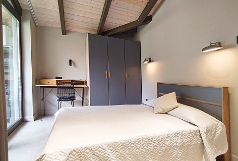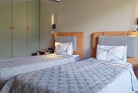 В номере: диван раскладной, кровати односпальные, кровать двуспальная, прикроватные тумбочки, пуфик, стол, столик журнальный, стол обеденный, стулья, шкаф, гладильная доска, духовой шкаф, камин, кондиционер, кофемашина, микроволновая печь, набор посуды, плита индукционная, посудомоечная машина, пылесос, сейф, стиральная машина, телевизор ЖК, утюг, холодильник, электрочайник